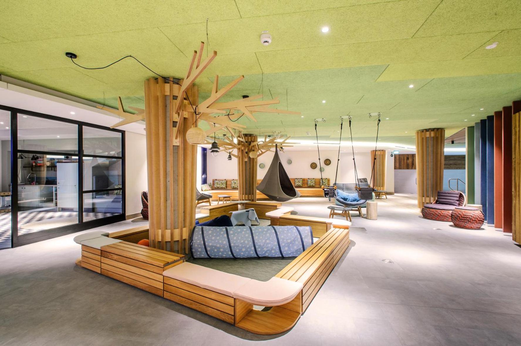 Indulge in the hotel's wellness area spread over three levels, featuring indoor and outdoor pools, 4 saunas, and a dedicated children's SPA. Each room, family room, and suite boasts modern amenities like a box spring bed, flat-screen TV, air conditioning, and a minibar for a comfortable stay.