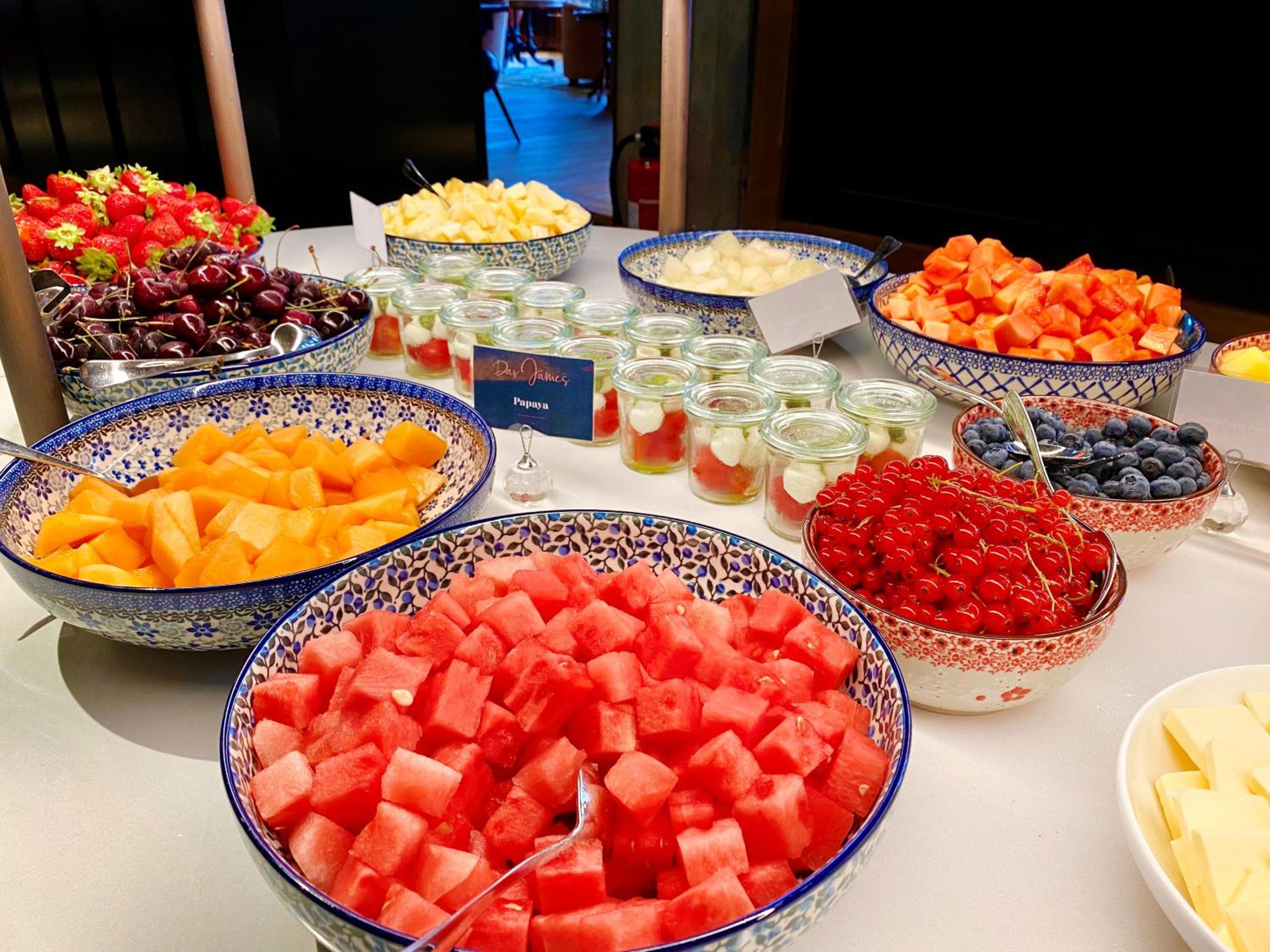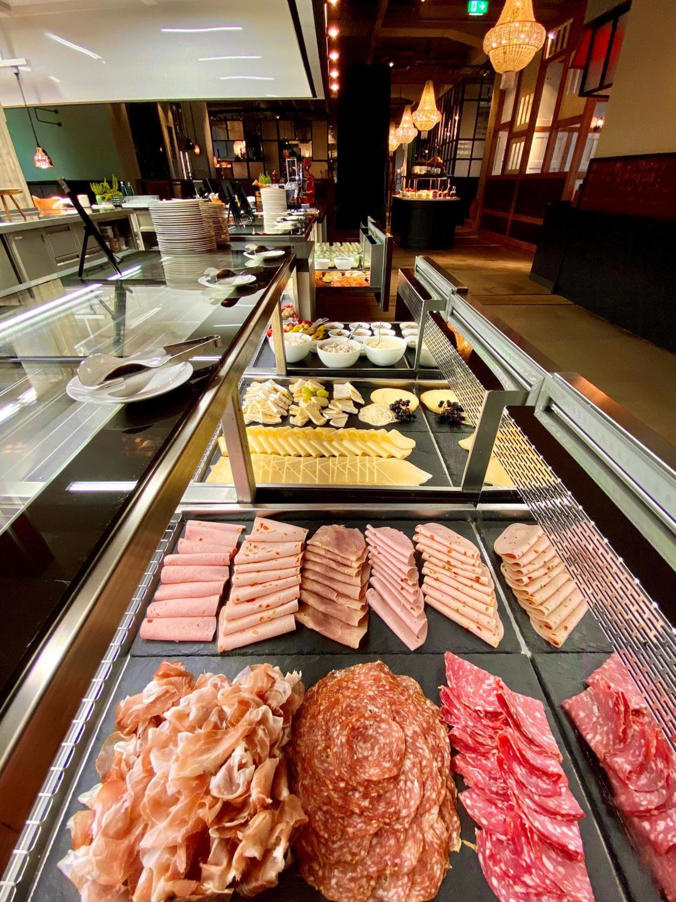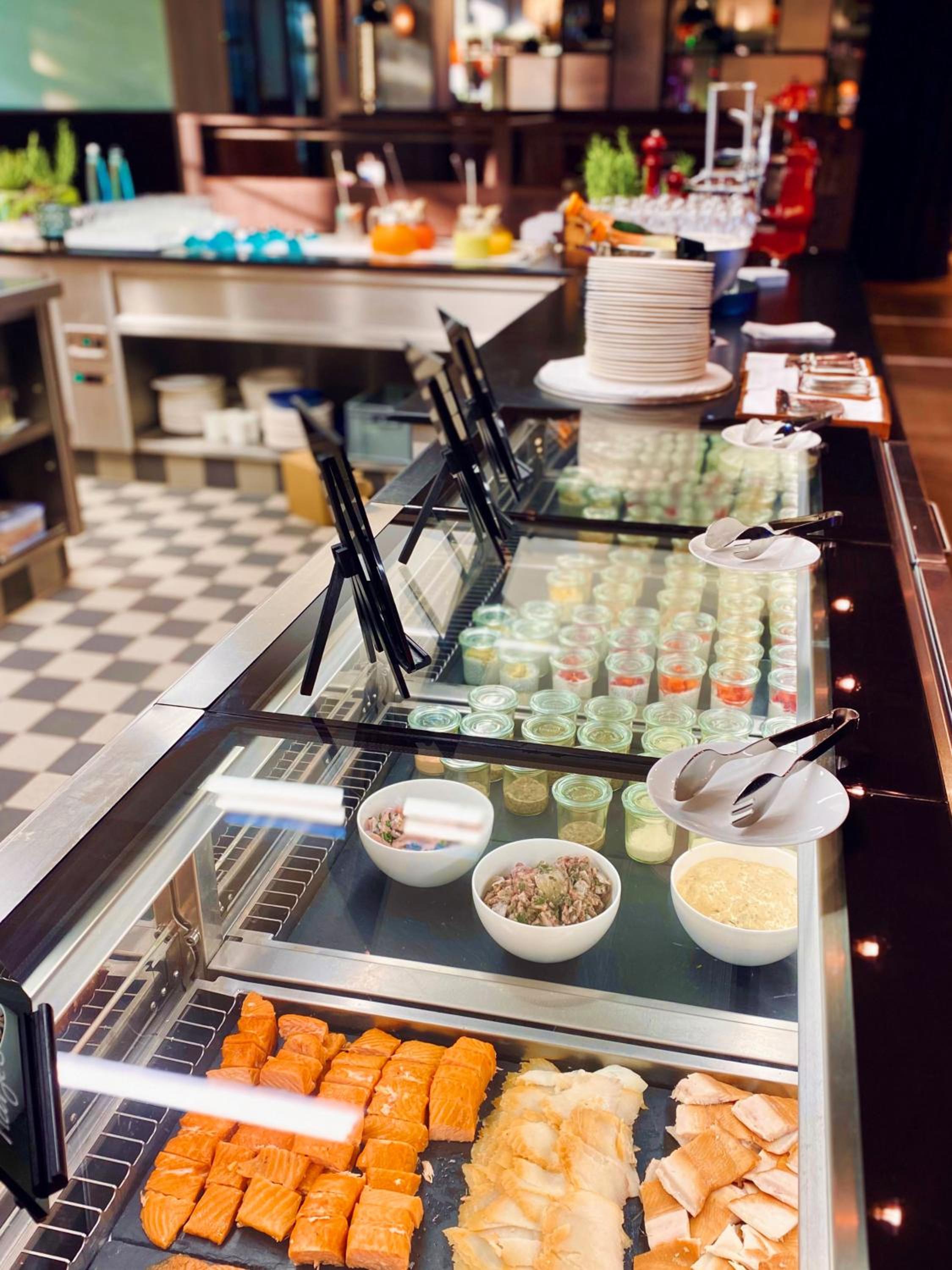 Morgenmad med et meget delikat stort og varieret udvalg - og mousserende vin til de tørstige.