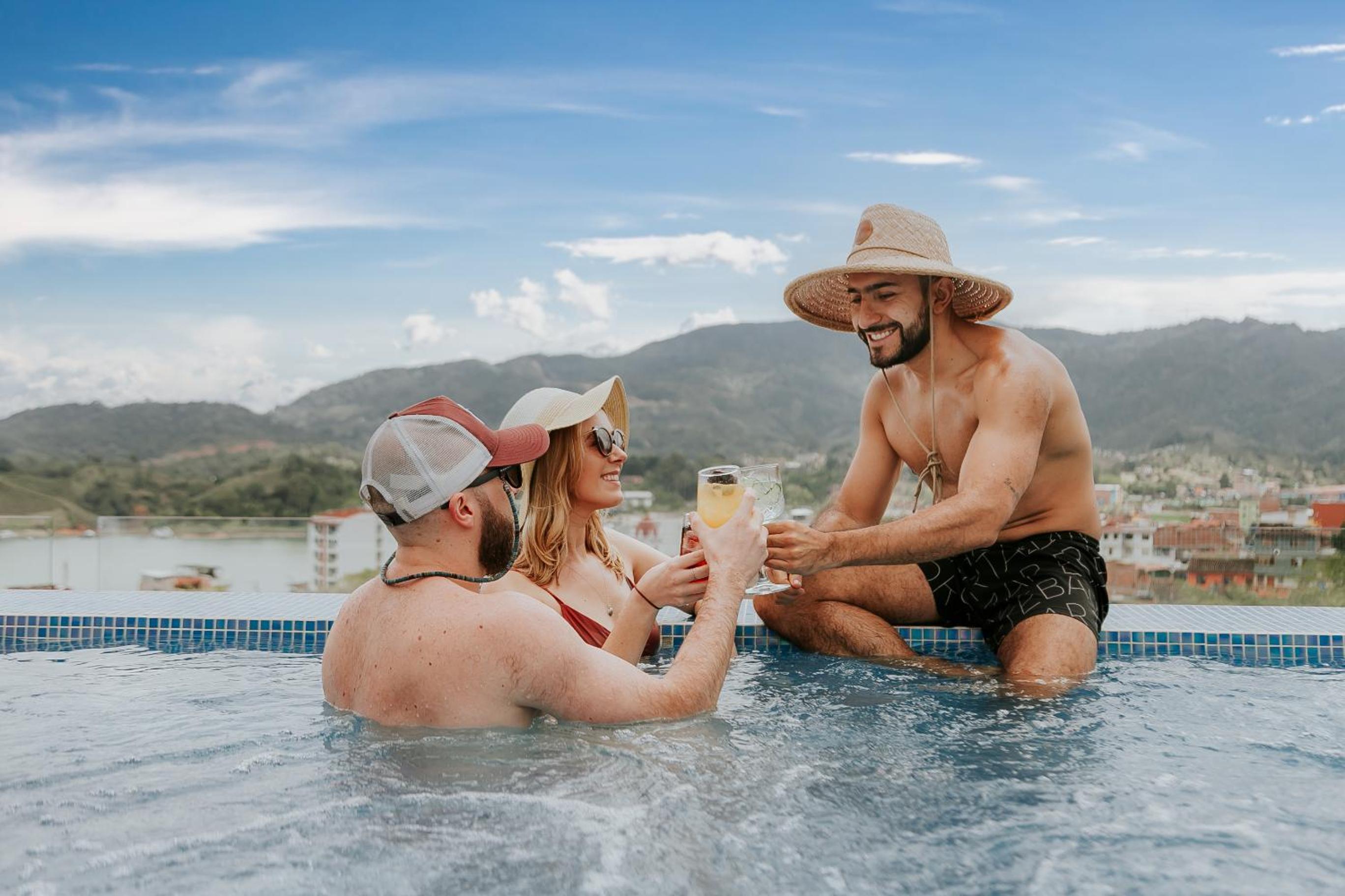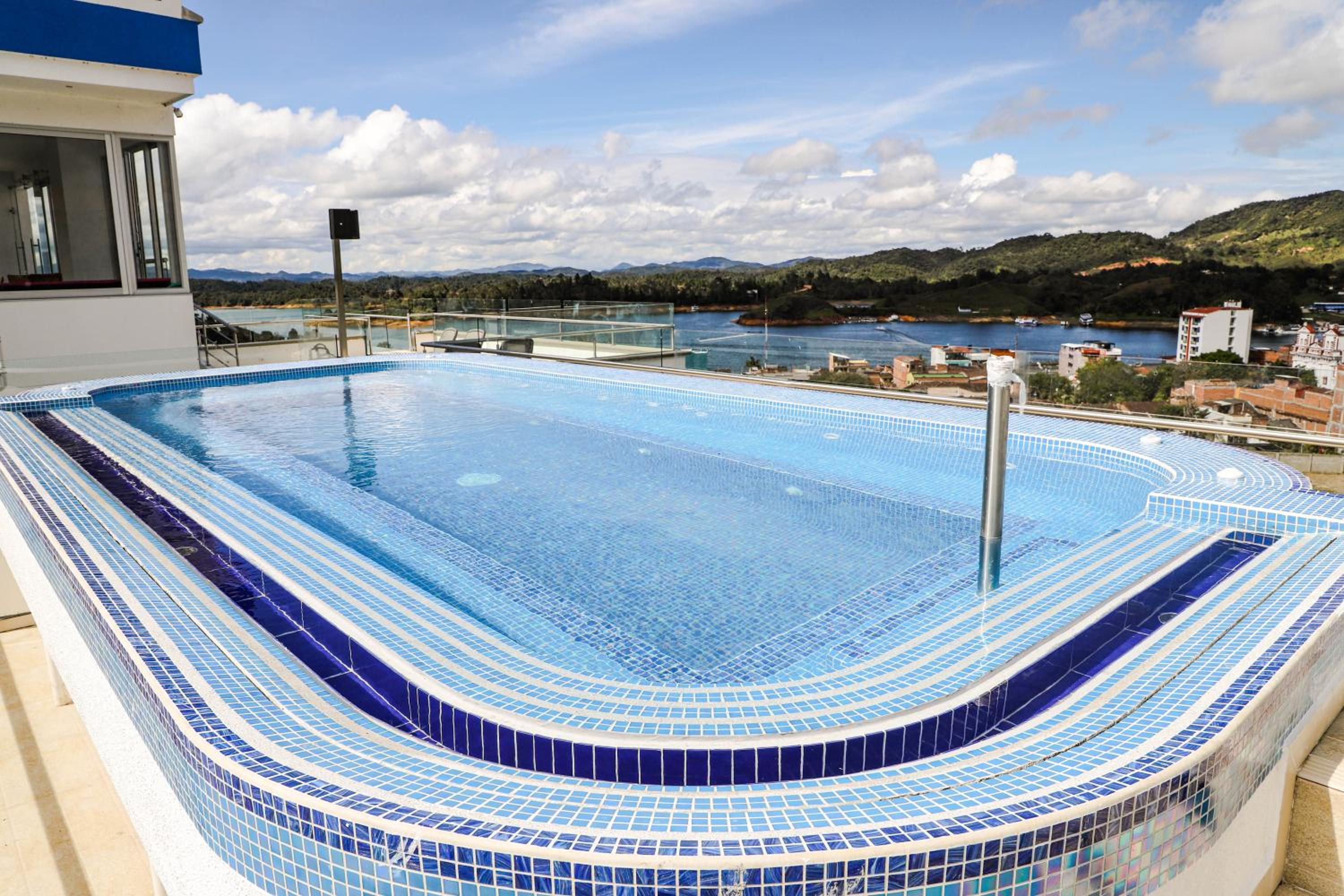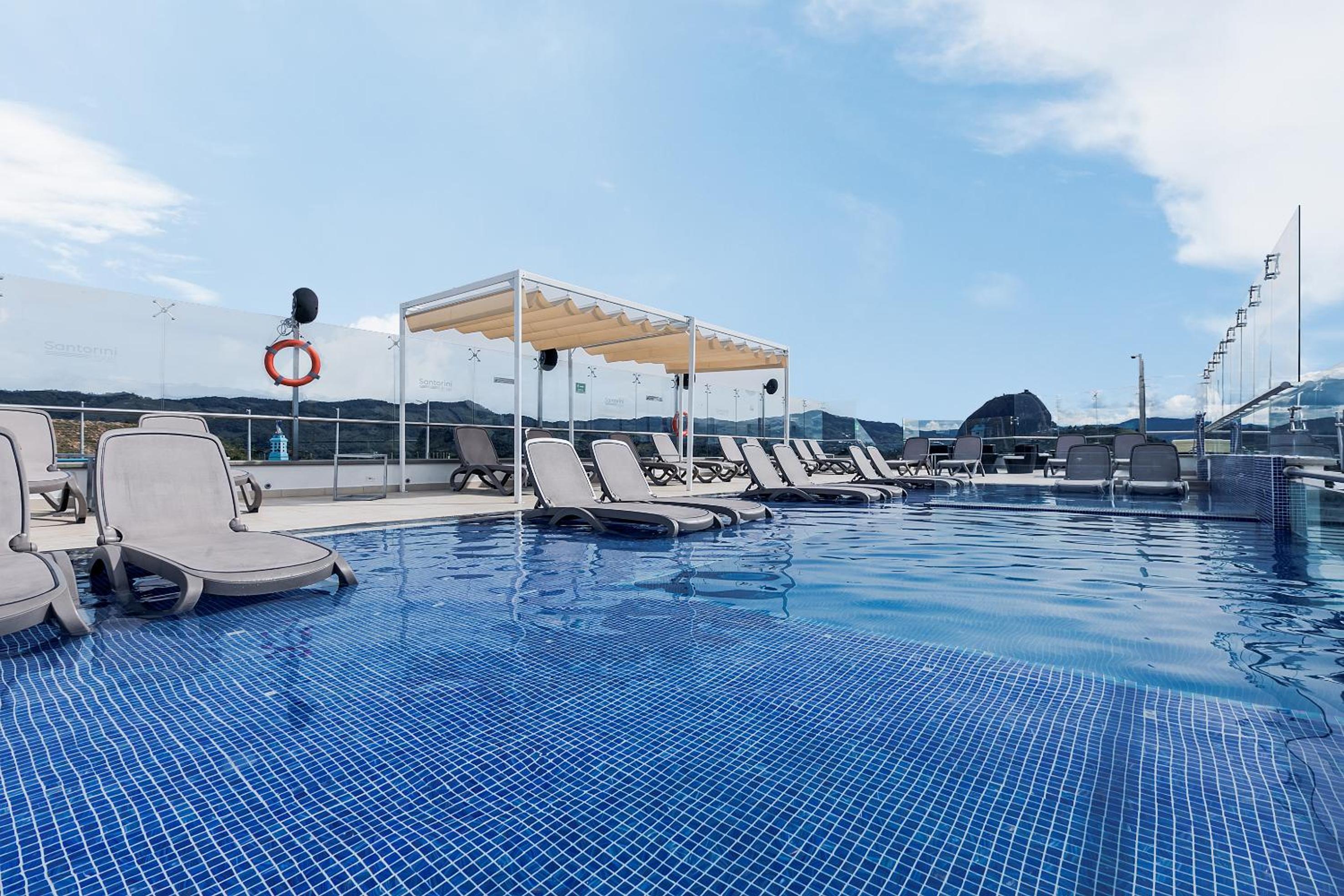 Hotel Santorini in Guatapé offers a sun terrace, swimming pool, garden, and bar, providing the perfect setting for a relaxing getaway.