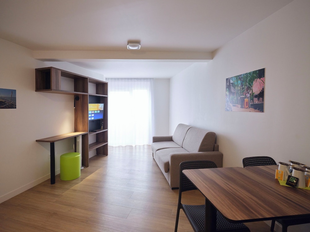 Chambre agréable et confortable. J’ai beaucoup apprécié le volet électrique. L’emplacement était idéal, proche de la gare et du vieux port.