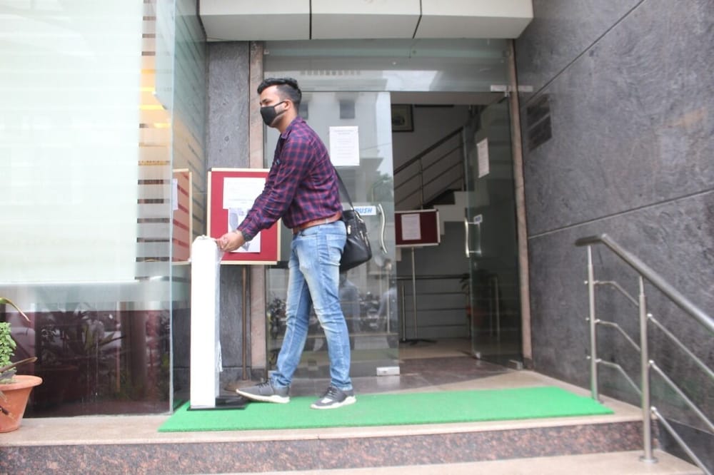 Guests are provided with free hand sanitizer