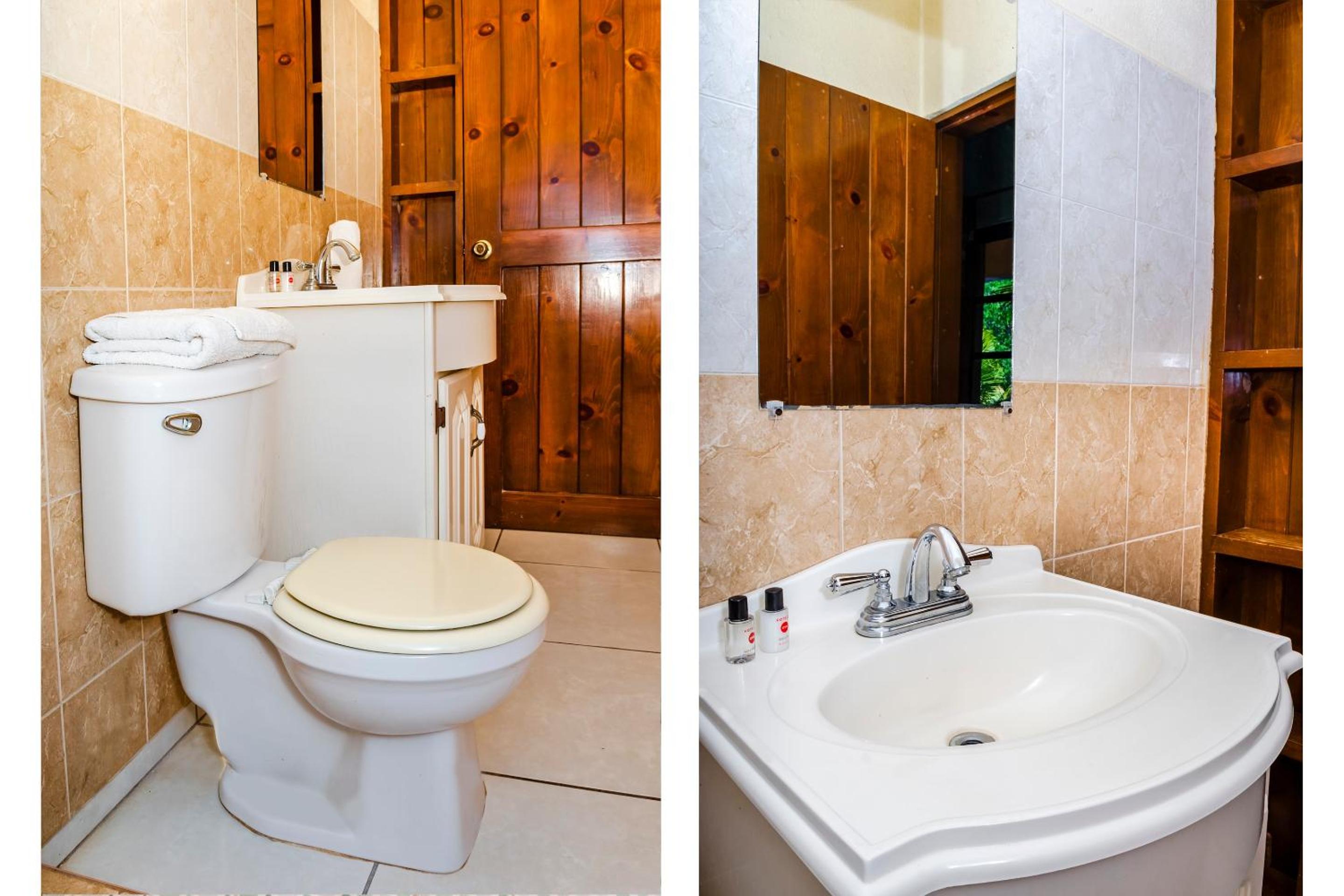 The room was tiny, and the toilet is in the way of the shower, so you have to squeeze past it .