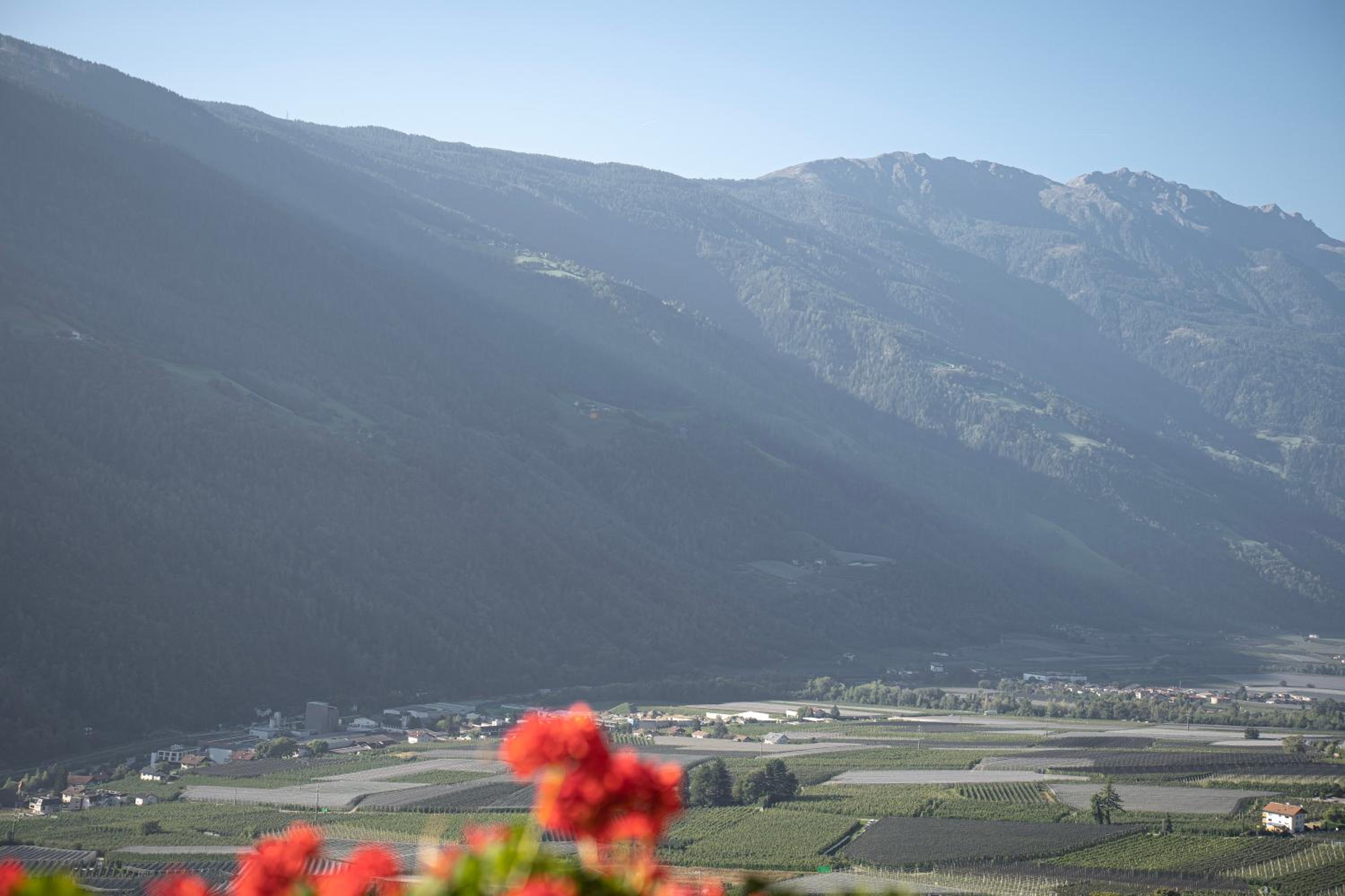 Sehr gute Lage oberhalb Partschins mit Aussicht über das Tal und Meran.