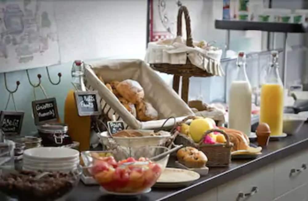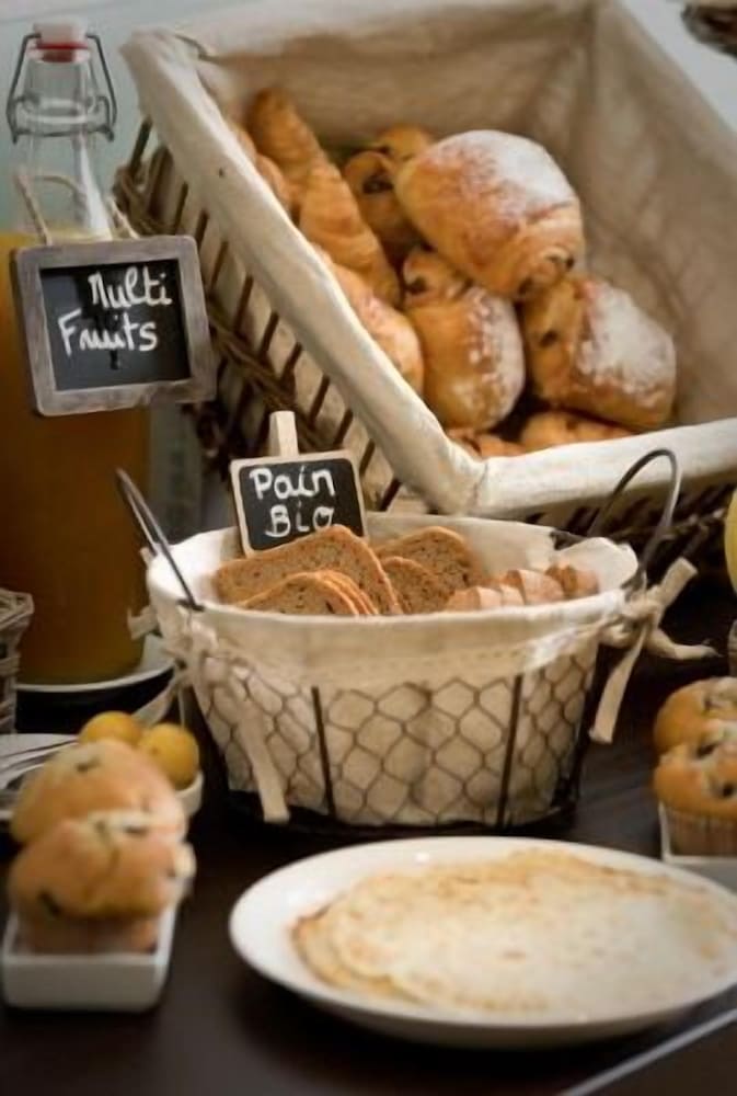 The hotel serves a buffet breakfast every morning at a cost of 10 Euro additional. If I had one complaint it would be that seems to me a bit pricey and they should somehow include a B&B package as one of their price options. Having said that, the breakfast is fabulous. All the rolls, breads, croissants are baked by Steeve, the husband of the team, and the fresh juices and jams are made by Regine, his wife. The spread includes yogurt, fresh fruits, muesli, egg, cold meats and cheeses of the region, and, of course, coffee and teas. One doesn't need to eat for the rest of the day after indulging in this smorgasbord of gracious plenty.