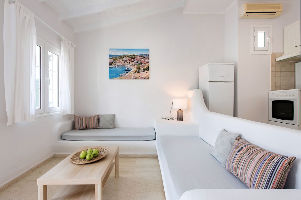 We had a wonderful week in Kassiopi staying here. The property isn’t 5 star but then neither is the price. It was comfortable, clean and a great location to walk to the harbour and beach. The check in was straightforward and the accommodation enabled us to have a choice of self catering. No washing machine but everything else, ie iron, hairdryer fridge etc. we would stay here again if we returned.