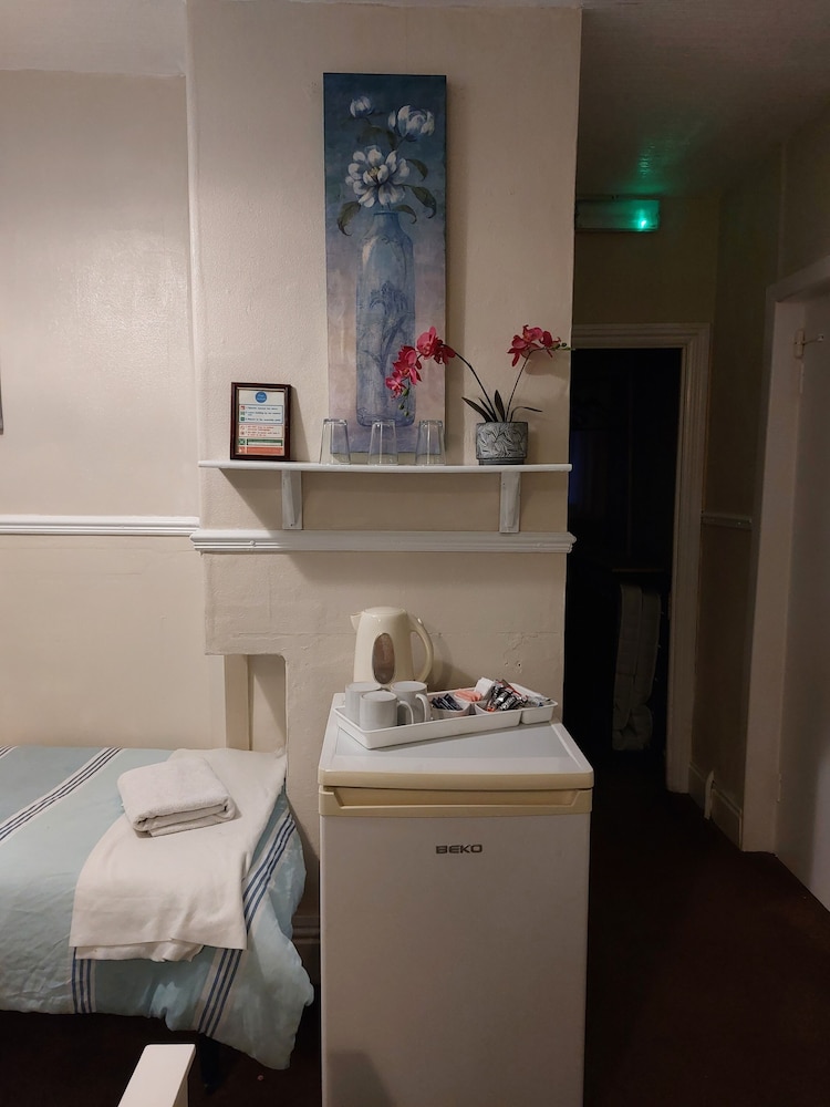 We arrived at the hotel hoping to drop off our bags because we knew we couldn’t check in until 2pm, the hotel was in darkness so we left and went back at 2.30, still the hotel was in darkness I phoned the number on the wall outside and a guy answered the phone we told him we had a resavation, he asked me what time and I explained the paperwork said we could check in at 2pm he said he would send someone around to let us in, we waited about 20 minutes . Someone arrived and gave us a key to the building and a key for our room. When we asked about breakfast he said they don’t provide breakfast although we had payed for breakfast upfront through hotel’s.com. Once again I phoned the number on the wall only to be told to take this up with hotels.com has he didn’t know why they advertised it as bed and breakfast. We were the only people staying at this hotel which was unpleasant all the rooms still had keys in the doors that’s how I know we were alone in the building. We did try our best to enjoy our stay by staying out as long as we could because there was no life at the hotel. We didn’t see any staff. We had planned to have a nightcap in the hotel but no bar. We did plan to have a sleep in but couldn’t wait to get up and leave. We couldn’t get a shower the following morning because the shower didn’t work and there was nobody there to contact to take a look at the shower Room 5 and I certainly wasn’t phoning the guy again. This stay has put me off Blackpool for ever.