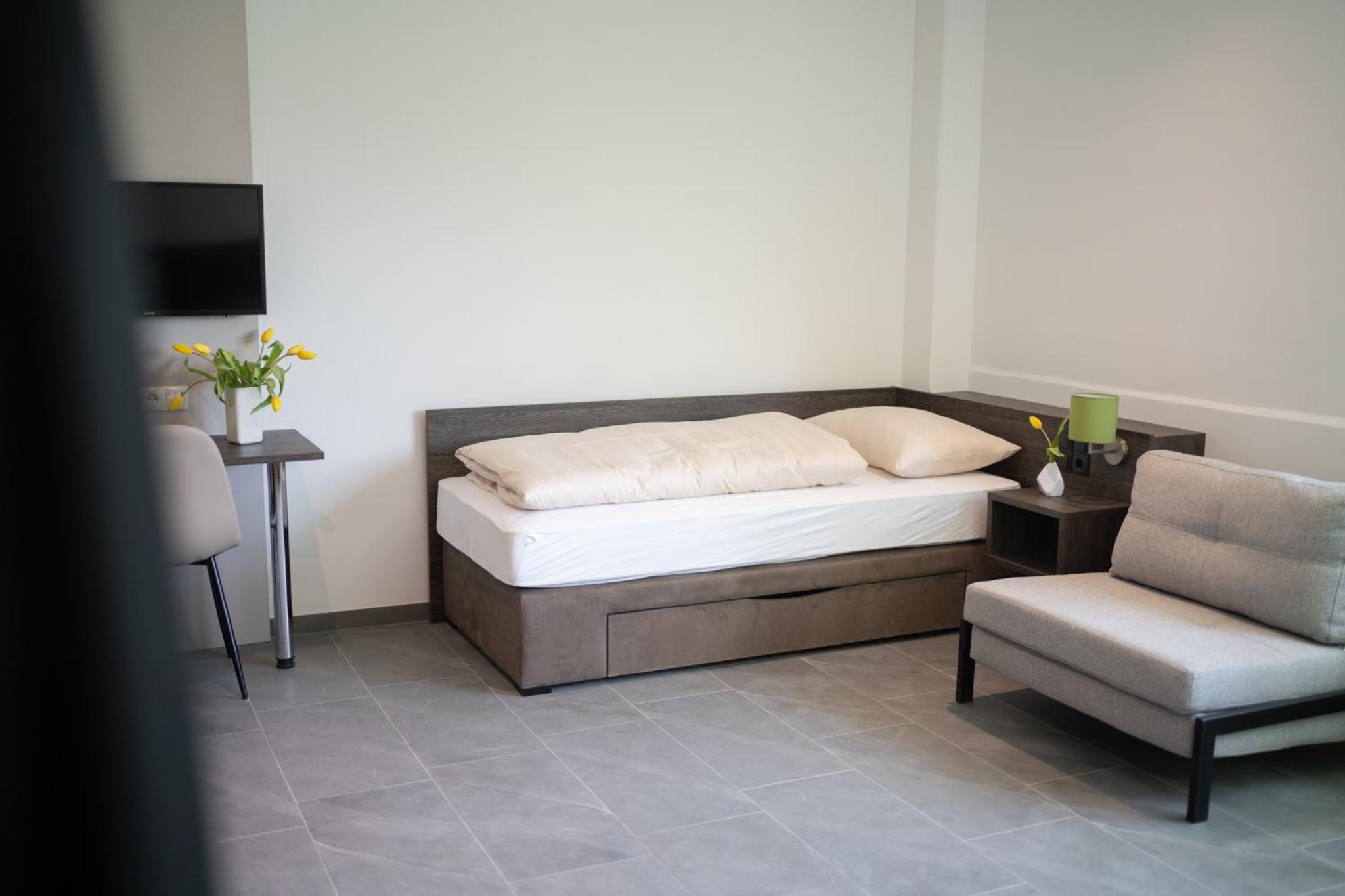 Objektiv moderne und große Zimmer, aber ich fühlte mich atmosphärisch an ein steriles Krankenhauszimmer erinnert. Auch kalt war es im Raum.