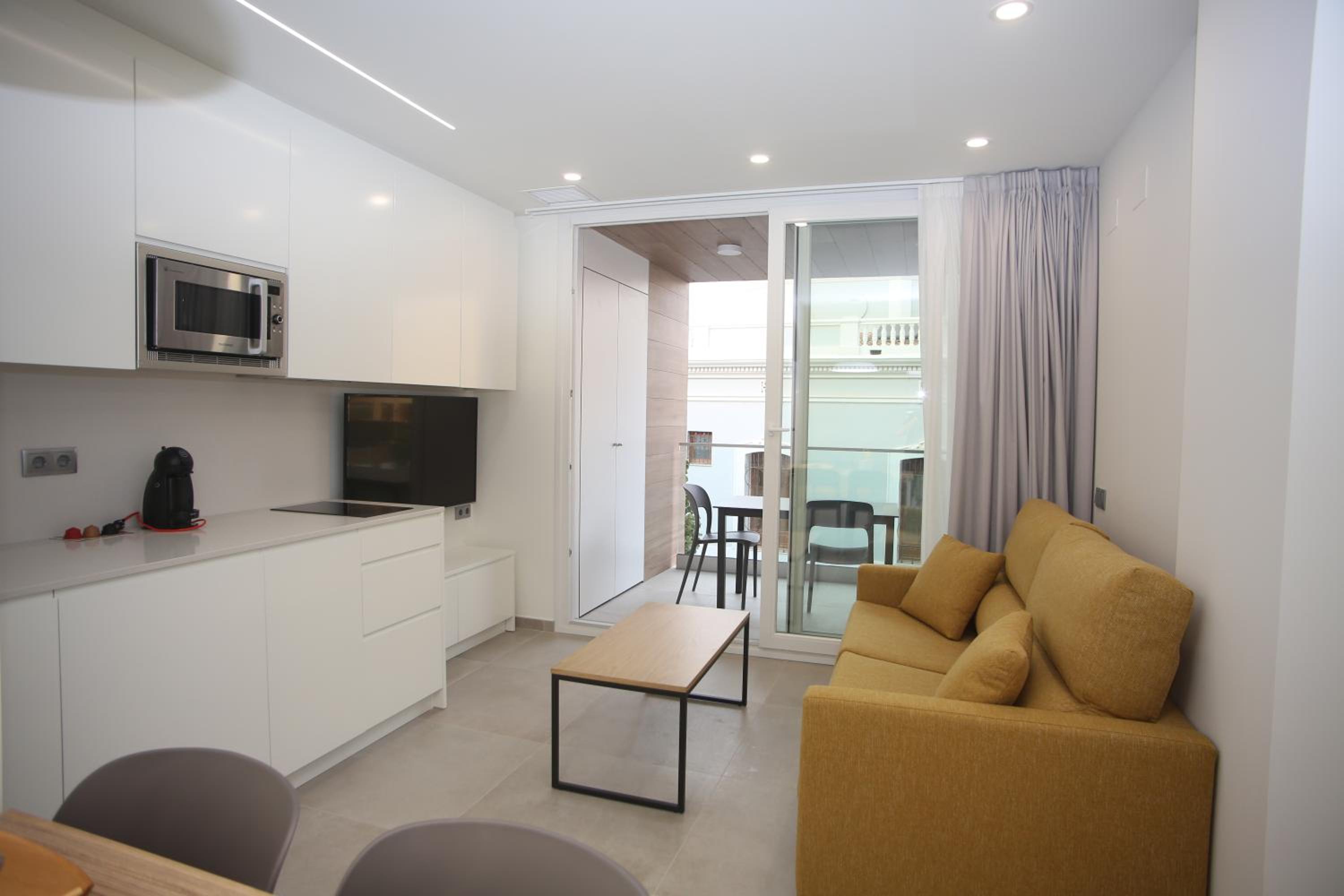 Indulge in the fully equipped kitchen featured in each unit, complete with modern appliances for your convenience. After a day of exploring Torre San Vicente Beach, relax in the garden and soak in the serene atmosphere.