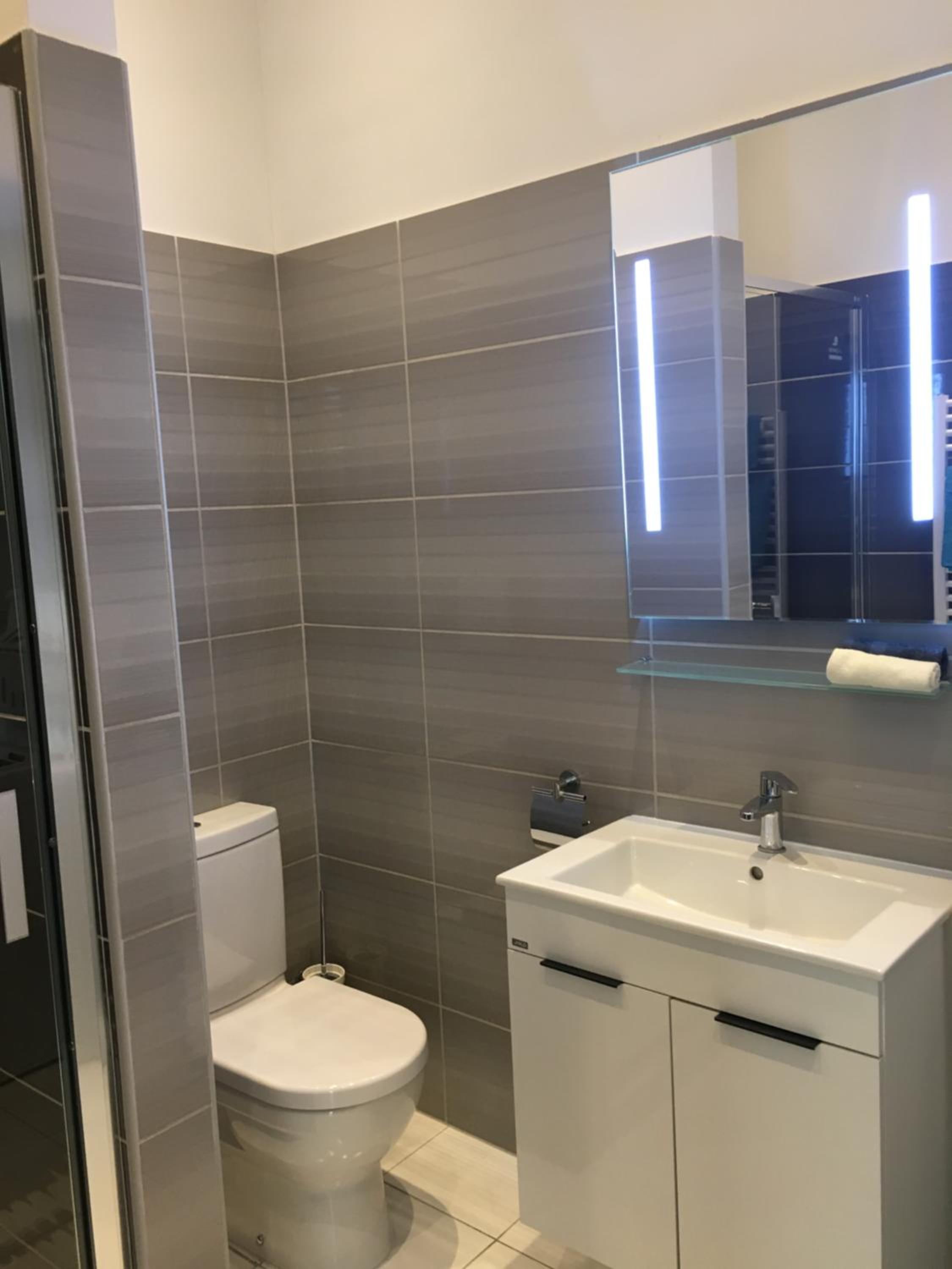 Indulge in the comfort of our apartments featuring a well-equipped kitchen, a cozy dining area, and a modern bathroom with complimentary toiletries. Enjoy the convenience of amenities like a dishwasher, microwave, and fridge during your stay.