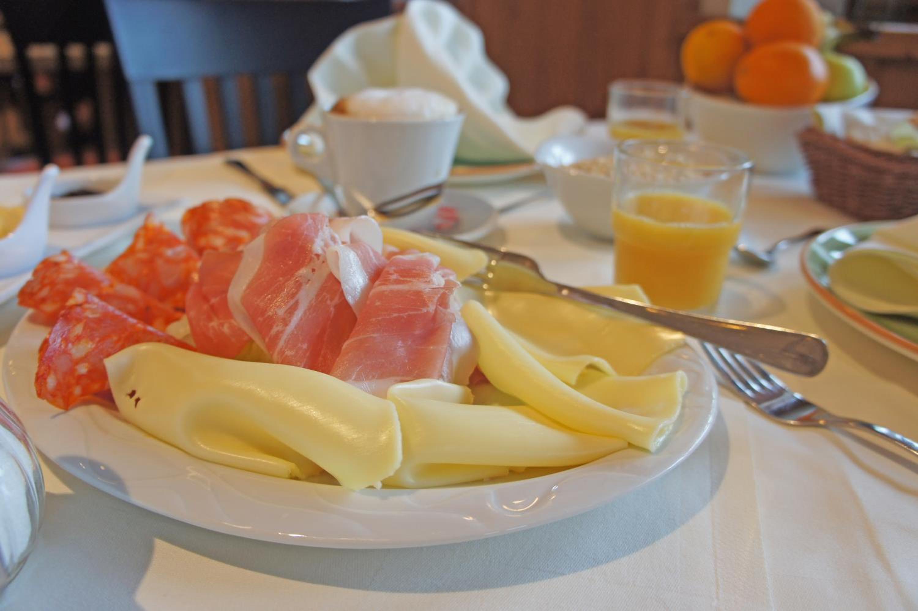 Завтрак дя меня Хороший. Вкусный хлеб, масло, мармелад, маленько сыра и колбасы. Больше не надо.