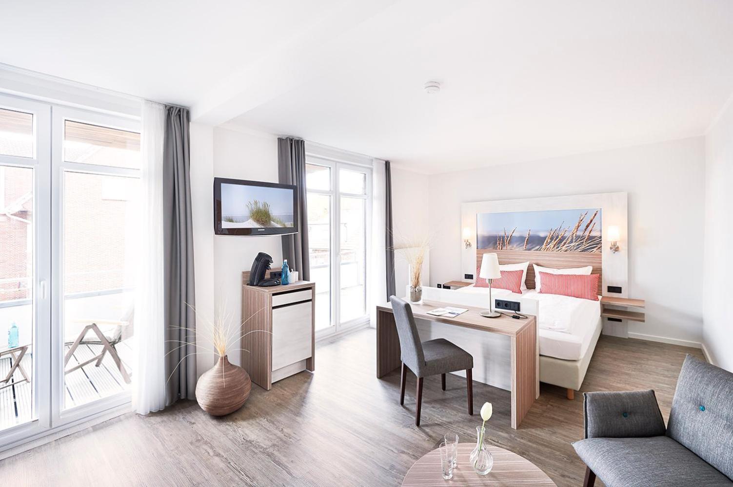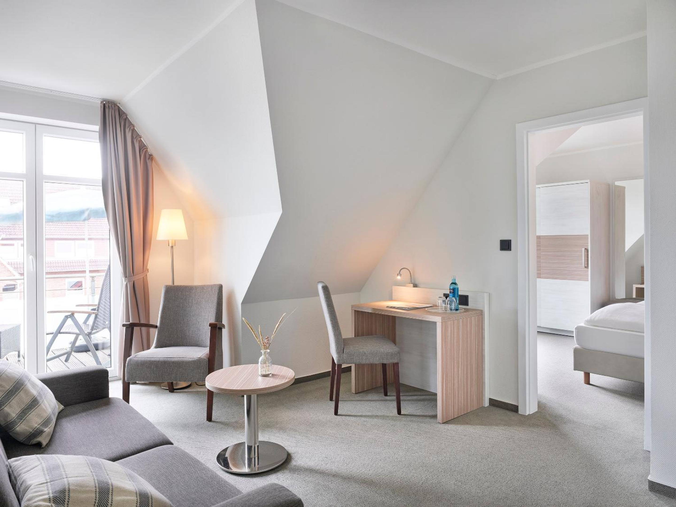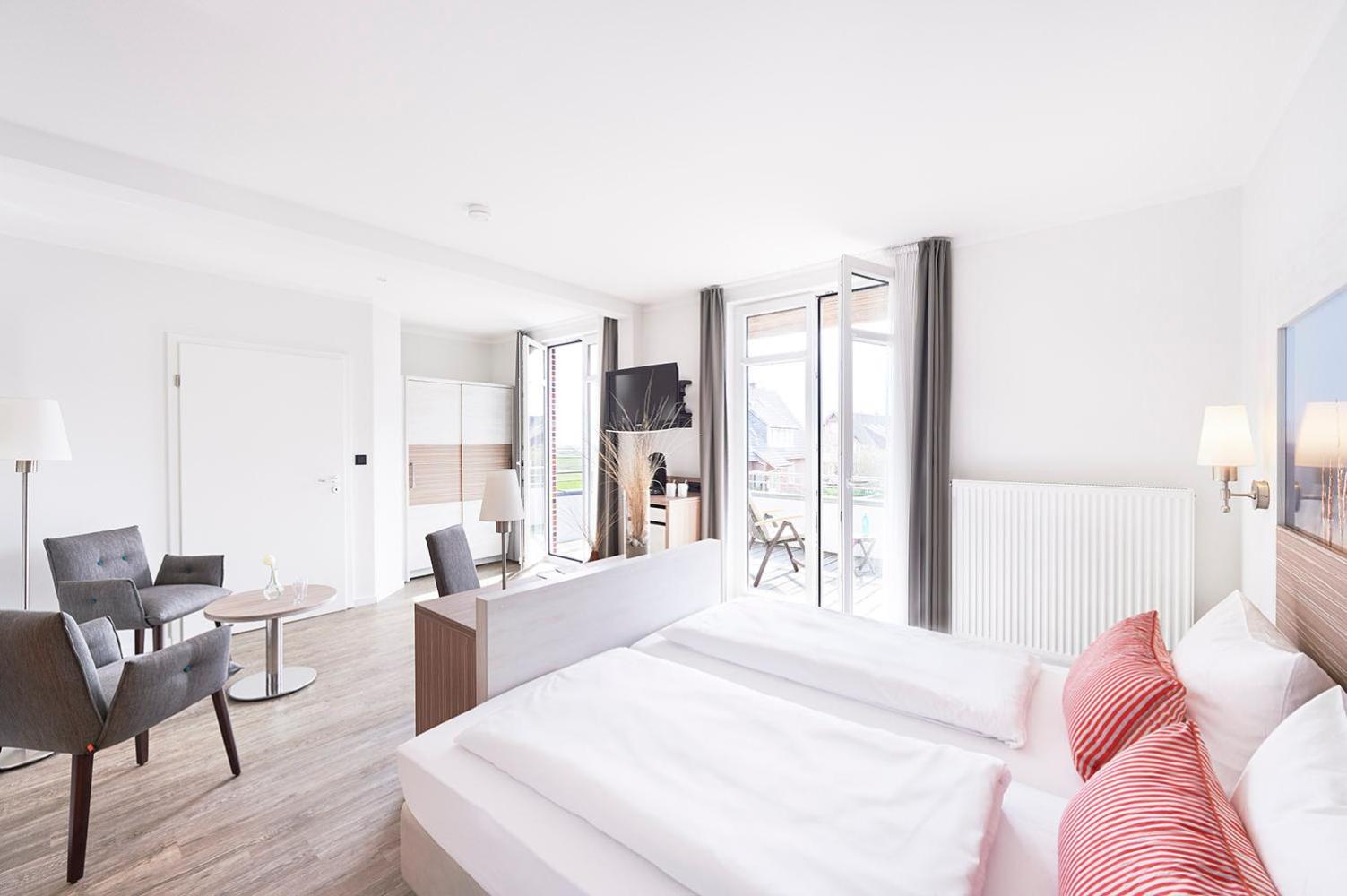 Relax in our bright and elegant rooms equipped with satellite TV, free WiFi, and modern furniture. Some rooms even feature balconies with picturesque views of the North Sea and Baltrum Dunes. Our wheelchair-accessible rooms ensure comfort and convenience for all guests.
