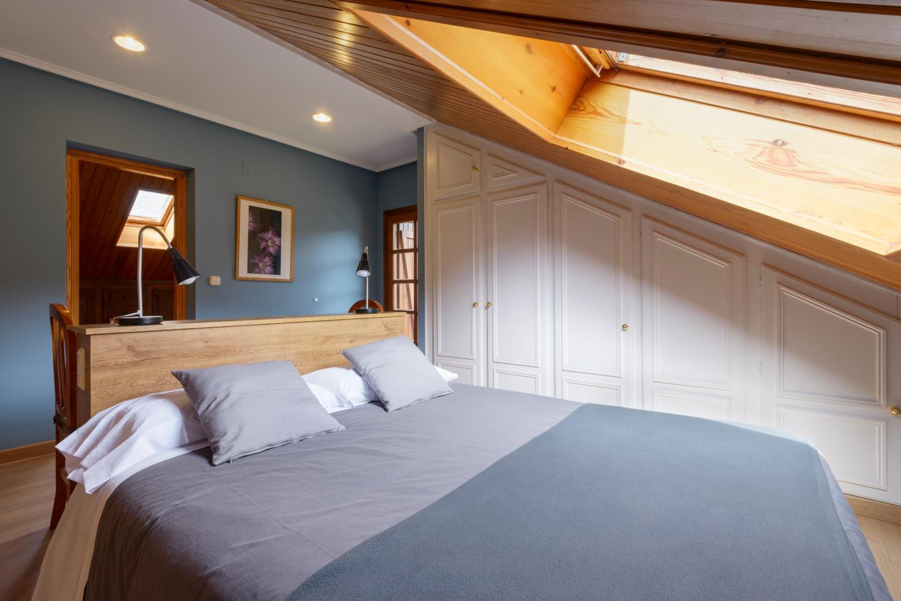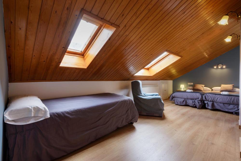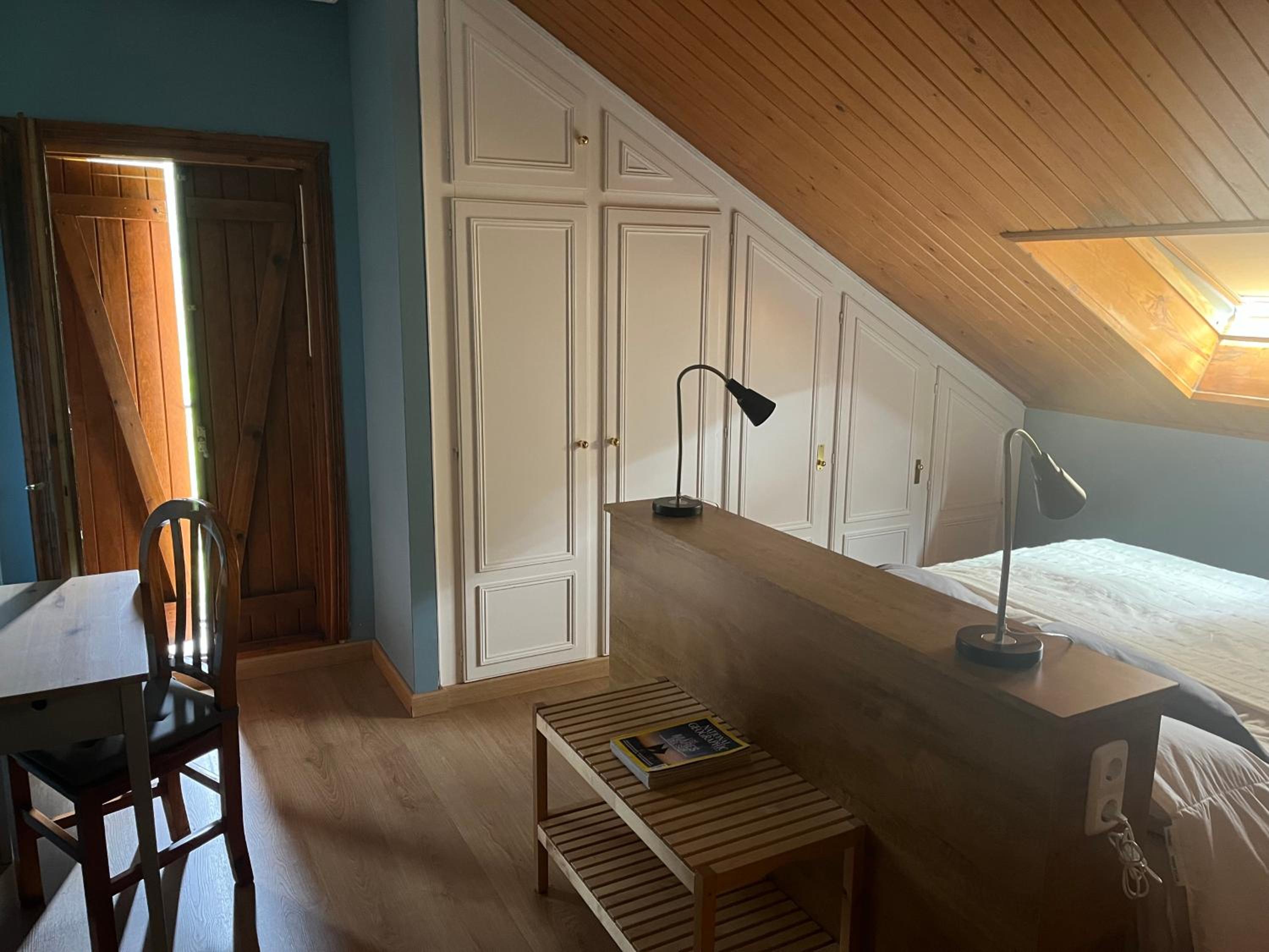 No tener cama doble y el techo de las habitaciones de las buhardillas, hay que vigilar mucho para no darte golpes.