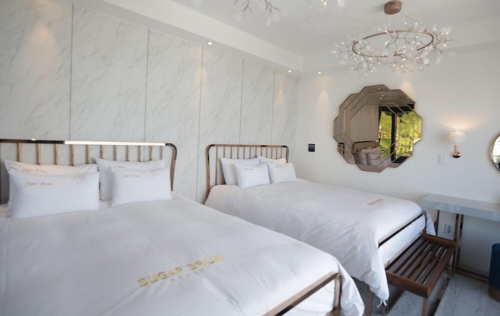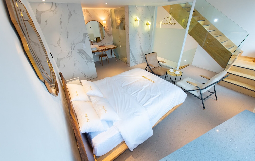 Treat yourself to a stay in one of the 41 individually decorated guestrooms at Sugarbrium, featuring private pools, heated floors, and kitchenettes equipped with modern amenities.