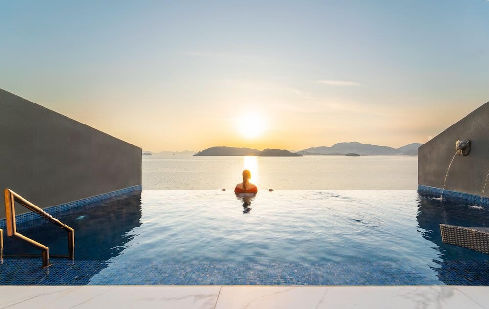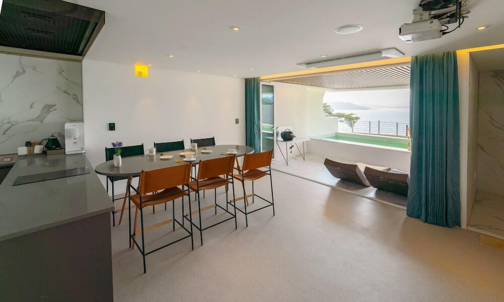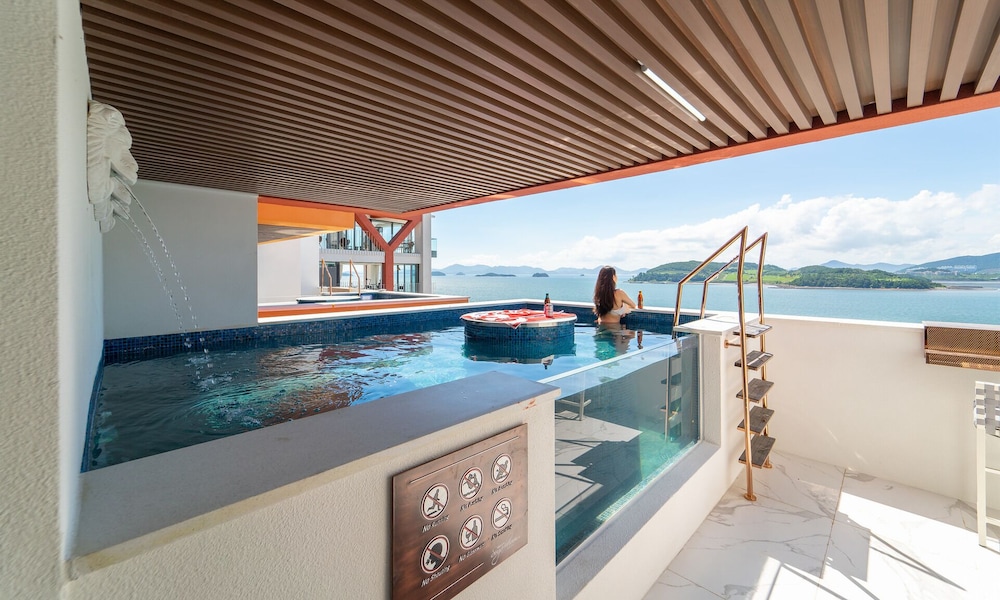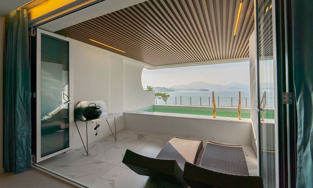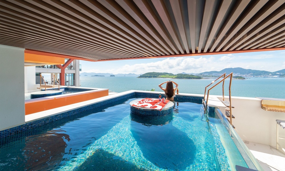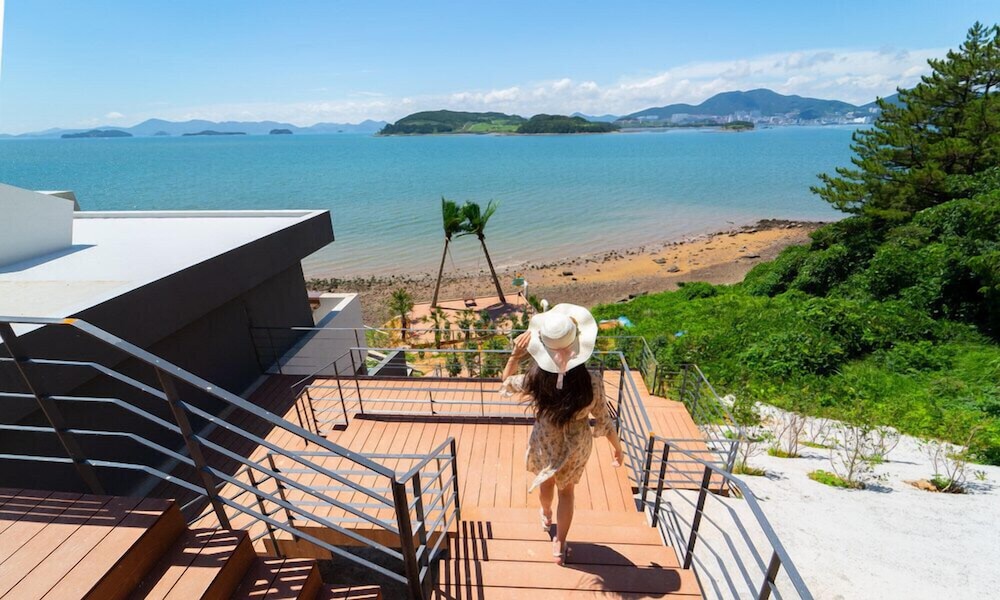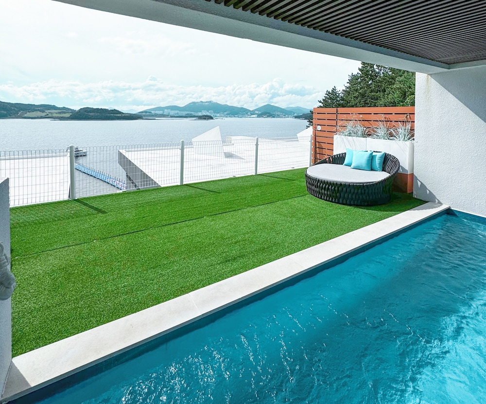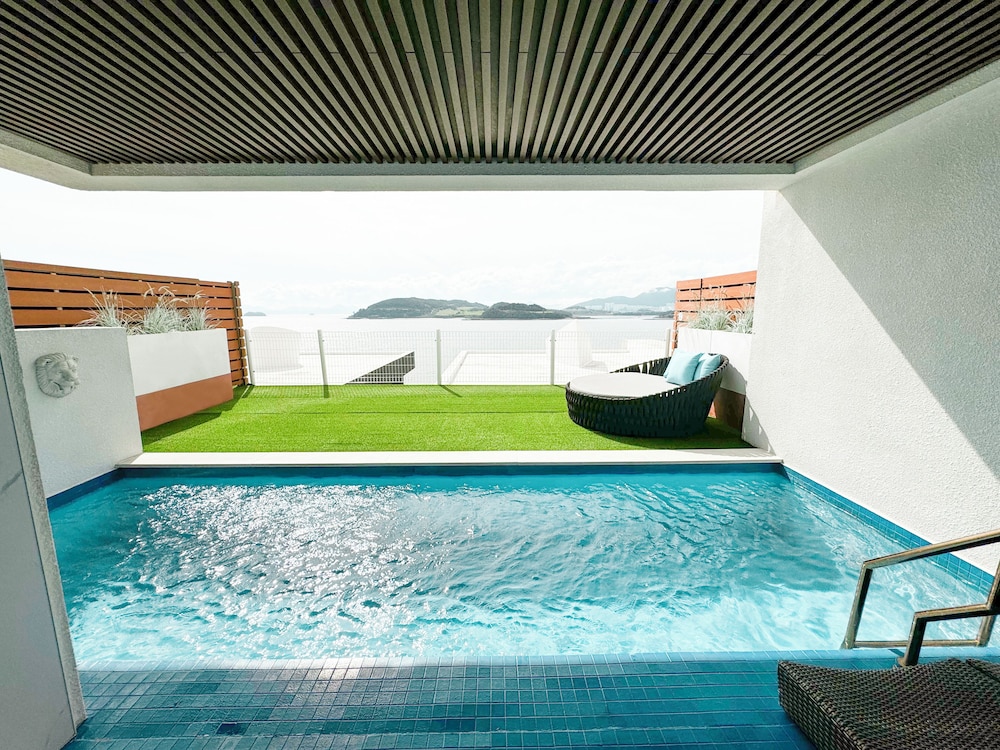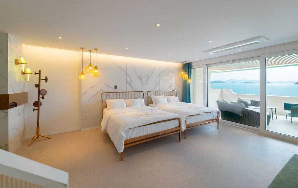 뷰 선셋 끝내주고, 숙소 역대급 멋있는데요. 물이 안좋아요 여수 전체가 그런건지 물이 태국물 같아요. 물만 좋았으면 재방문 할텐데 아쉬워요.