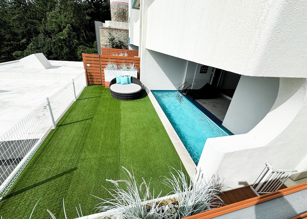 바다 경치와, 객실 크기, 객실내 비품( 전자랜지, 인덕션, 정수기, 커피머신, 냉장고, 각종 식기류) 은, 더할나위없이 좋았지만, 객실 전용수영장에서 아이들과 놀려고 택한 숙소였는데,