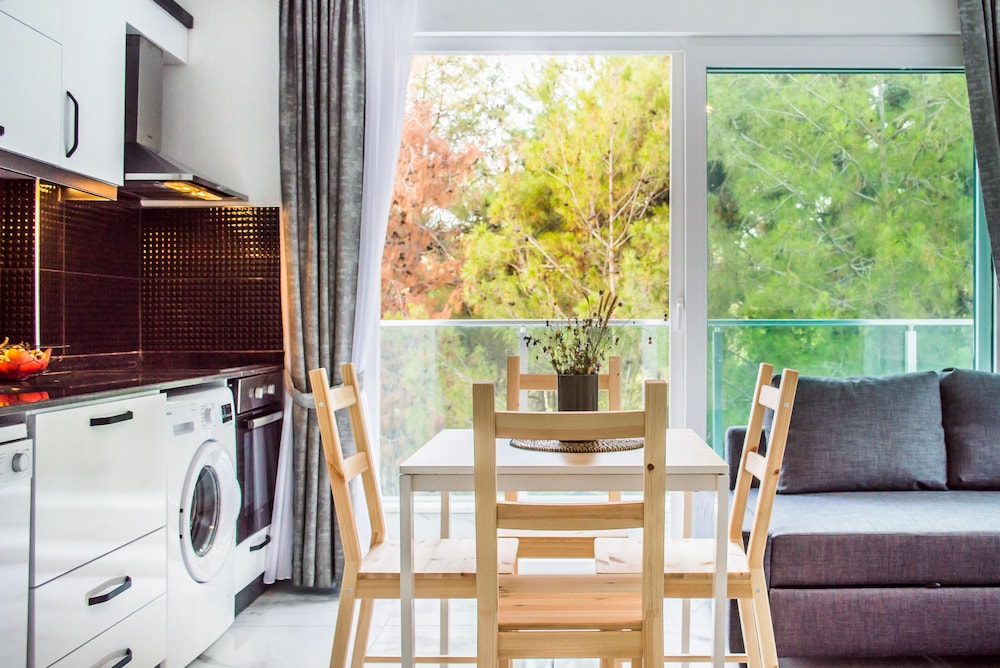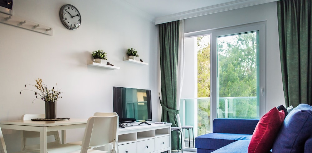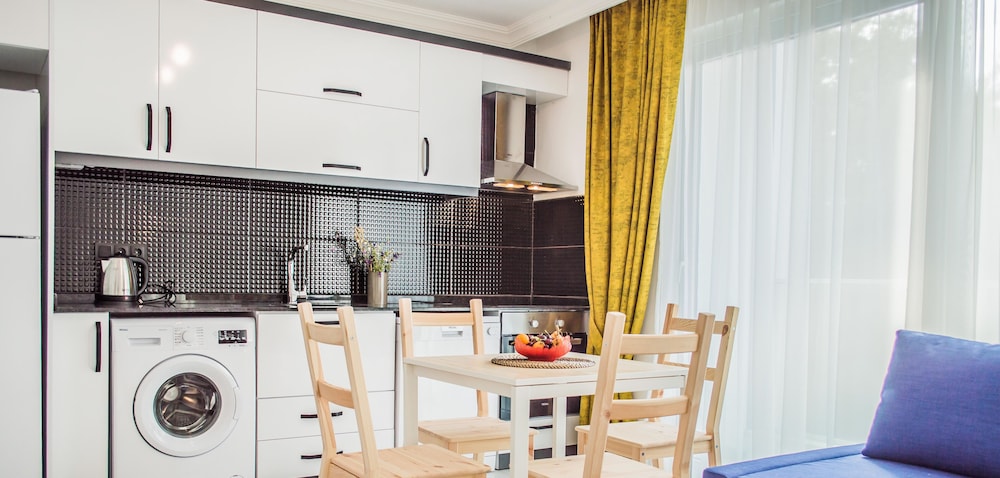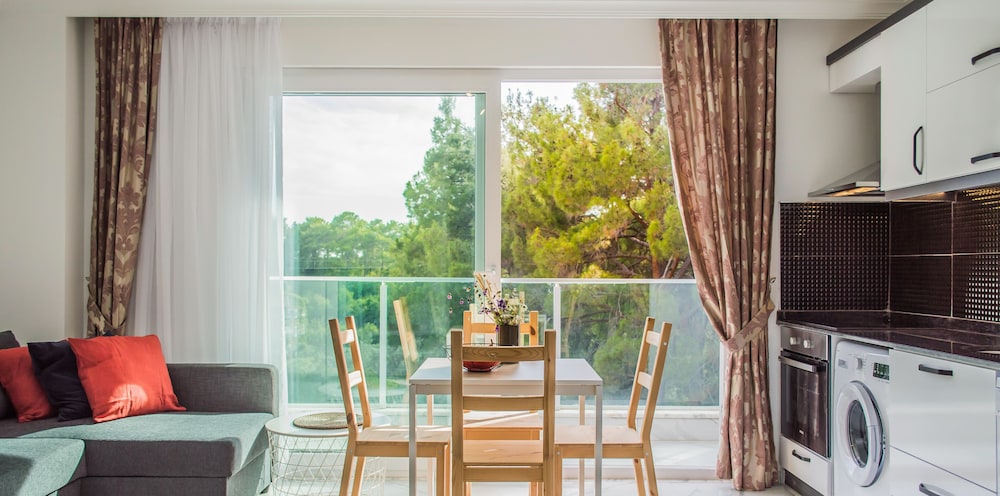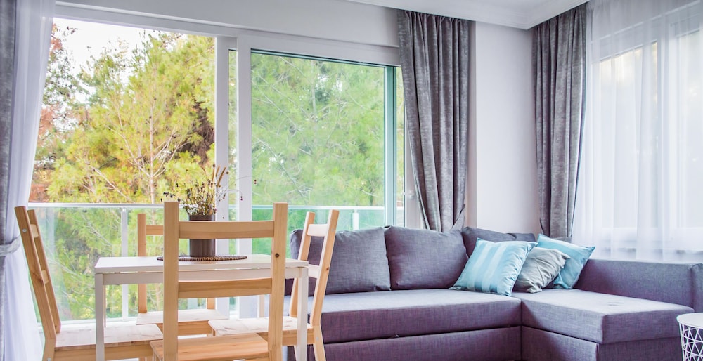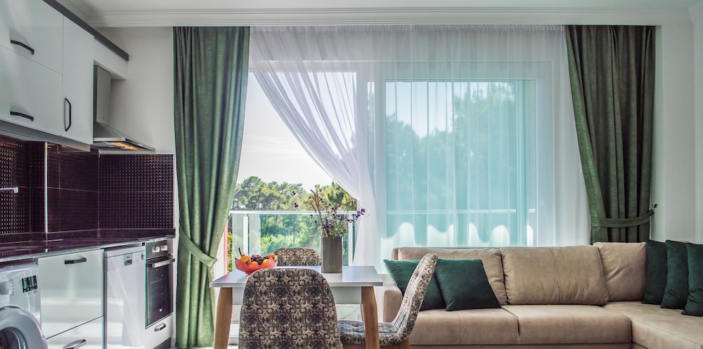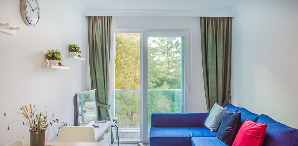 Otel ruslarin yasadigi bir apartman ya da yazlik olarak kullaniyorlar sanirim, ancak giris cikisi otel gibi. Resepsiyon yok, Yulia hanim cok ilgili hemen cevap veriyor sorunuza. Daire cok temiz fakat havlu ve diger bazi esyalar cok guven vermedi. Camasir makinesi var yikayabilirsiniz. Apart otelde olmasi gereken her sey var, ev konforunda. Esyalar ikeadan. Plaj ile anlaşmalılar ancak en yakin plaj cok kucuk. Yurume mesafe uzak. Mutlaka aracla gelmelisiniz. Havuzu var hic kullanmadik cocuk cok fazlaydi. Yolu asfalt degil. Otoparka yer bulabiliyorsunuz. Ormanin icinde sayilir sessiz sakin bir yerde. Aracla 2 dk carsiya gidebilirsiniz. Aile olarak rahatca kalabilirsiniz cunku hep aileler var. Genel olarak memnun kaldik.