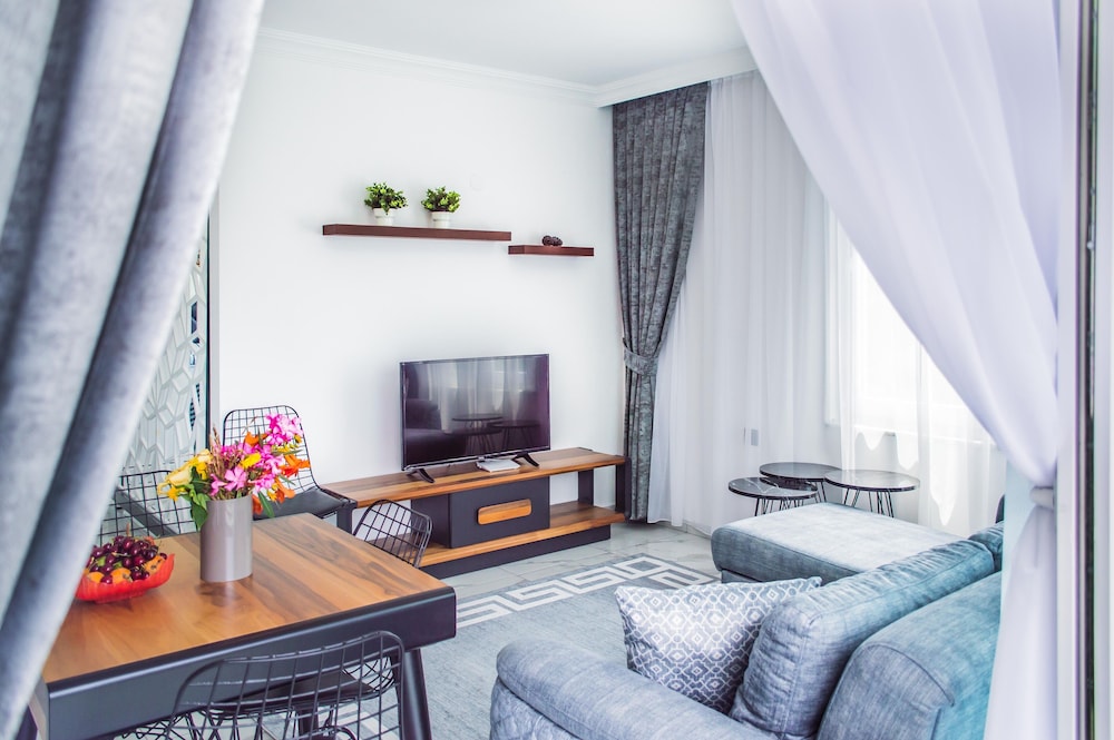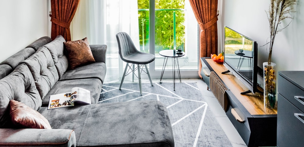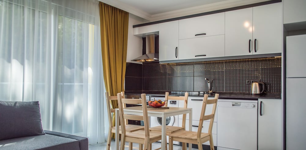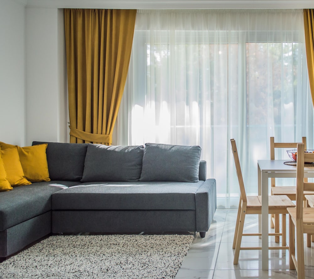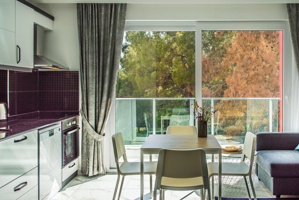 Otel ruslarin yasadigi bir apartman ya da yazlik olarak kullaniyorlar sanirim, ancak giris cikisi otel gibi. Resepsiyon yok, Yulia hanim cok ilgili hemen cevap veriyor sorunuza. Daire cok temiz fakat havlu ve diger bazi esyalar cok guven vermedi. Camasir makinesi var yikayabilirsiniz. Apart otelde olmasi gereken her sey var, ev konforunda. Esyalar ikeadan. Plaj ile anlaşmalılar ancak en yakin plaj cok kucuk. Yurume mesafe uzak. Mutlaka aracla gelmelisiniz. Havuzu var hic kullanmadik cocuk cok fazlaydi. Yolu asfalt degil. Otoparka yer bulabiliyorsunuz. Ormanin icinde sayilir sessiz sakin bir yerde. Aracla 2 dk carsiya gidebilirsiniz. Aile olarak rahatca kalabilirsiniz cunku hep aileler var. Genel olarak memnun kaldik.