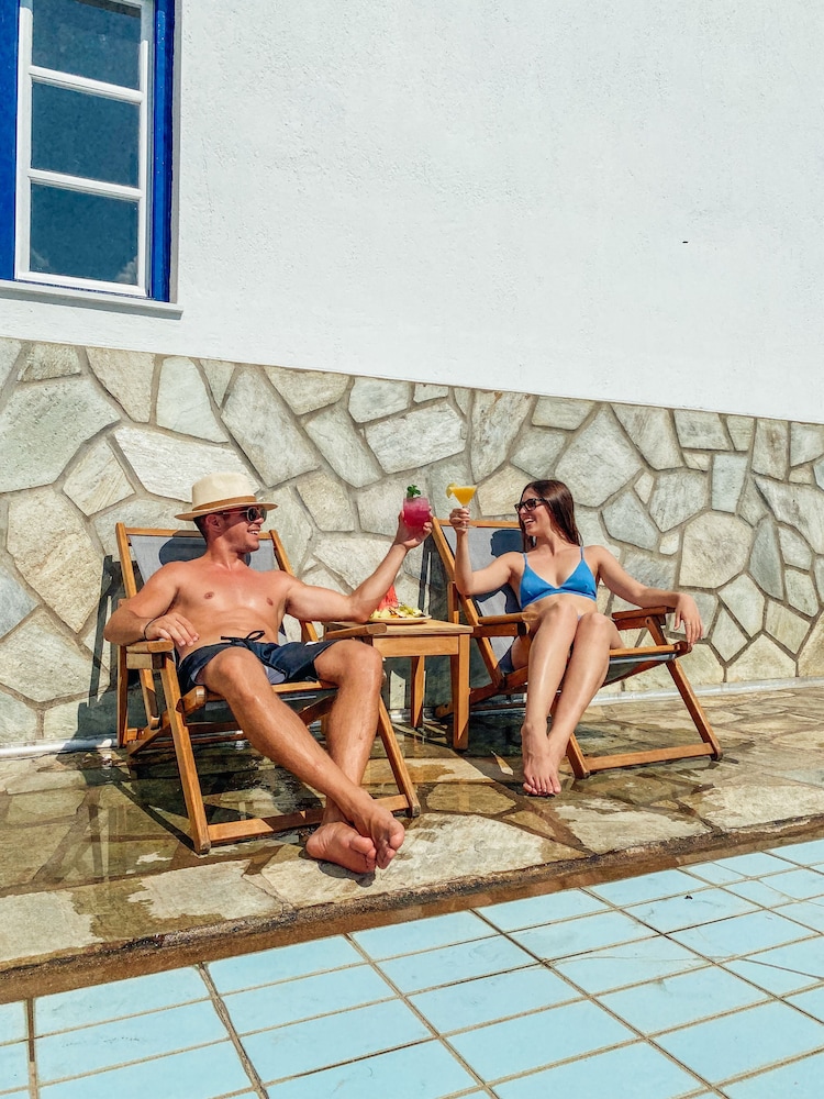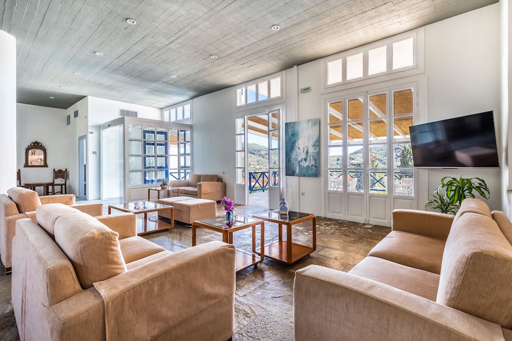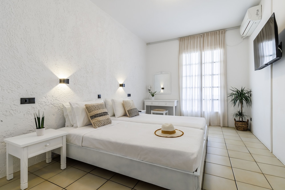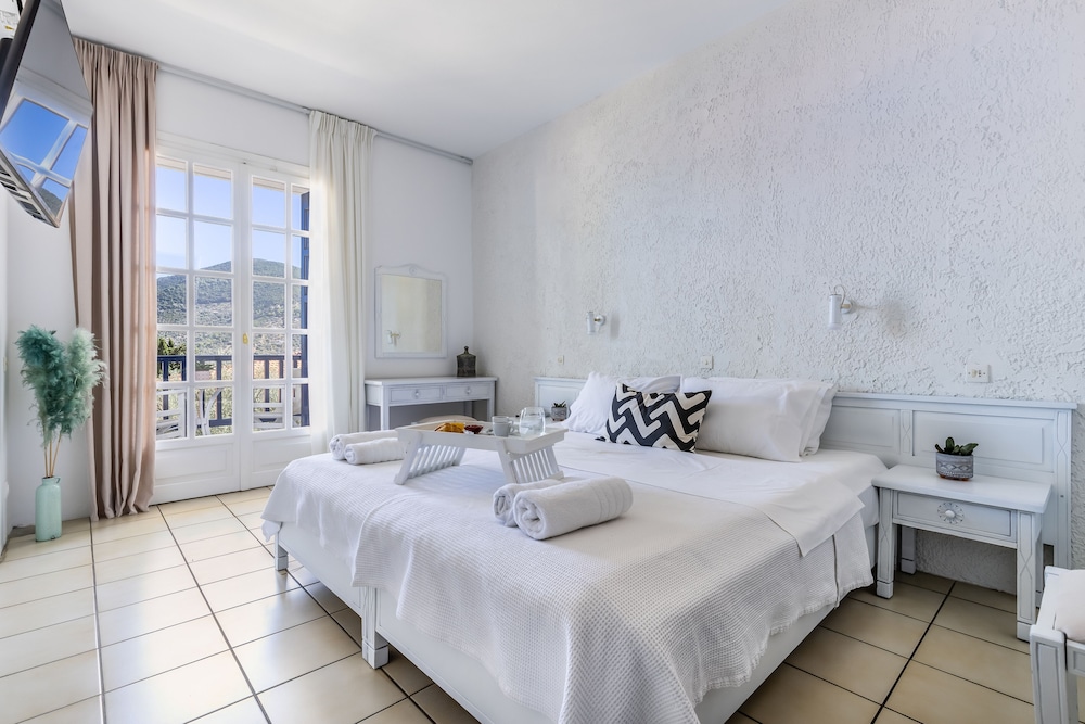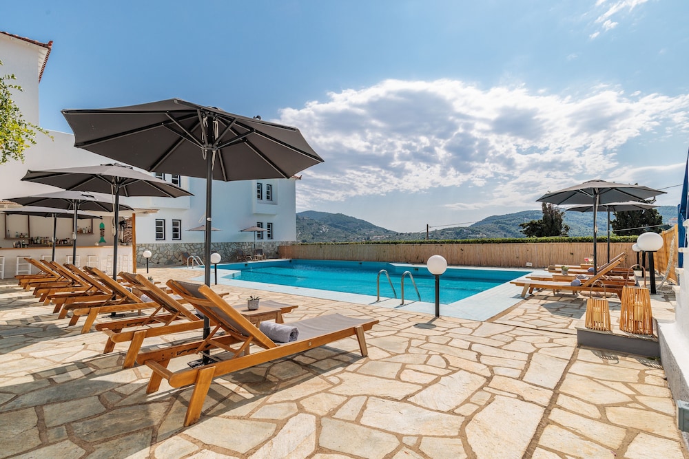 Pool at the hotel was lovely. Room was basic with very hard beds. Staff were lovely and very helpful. Convenient stay to visit Skopelos.