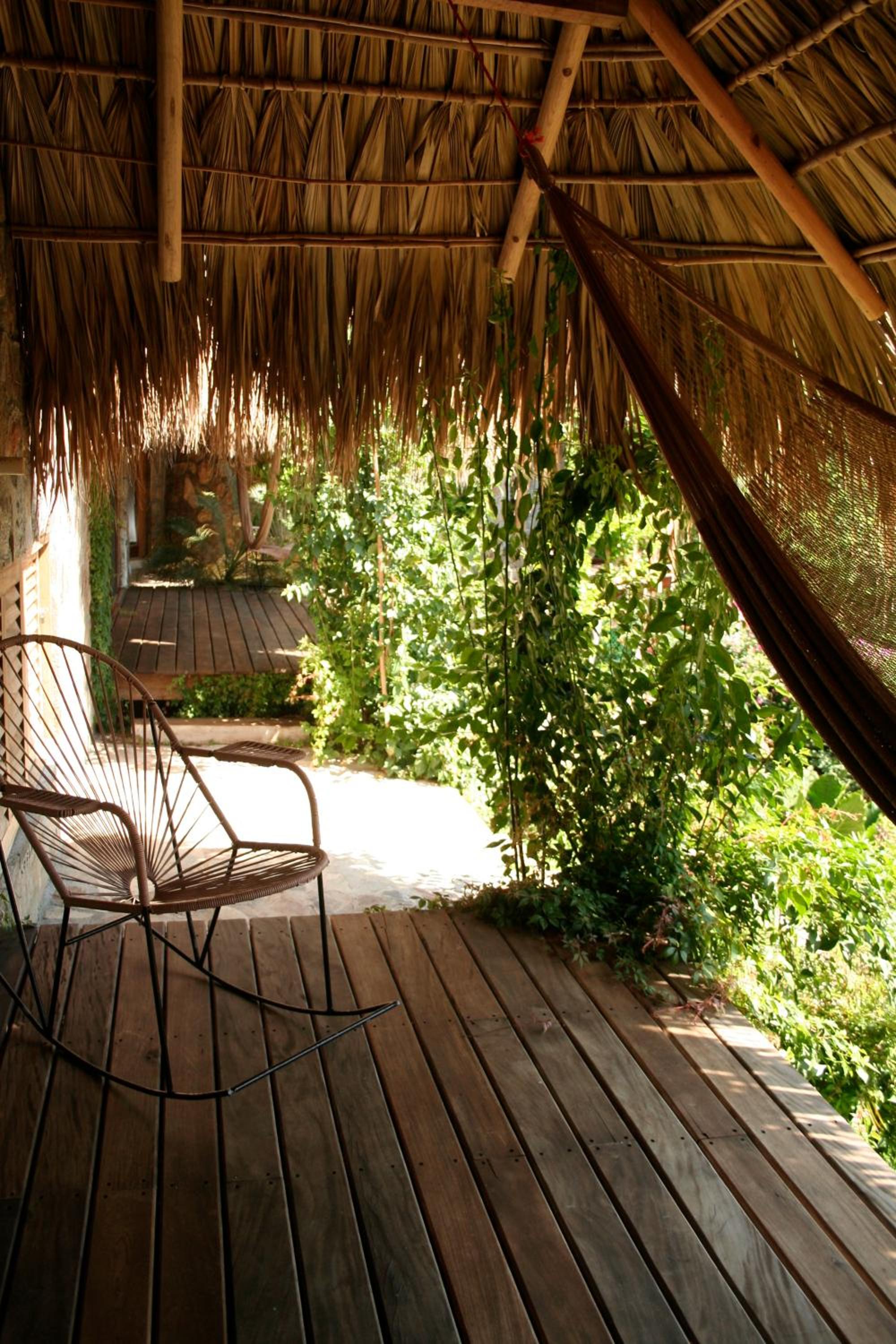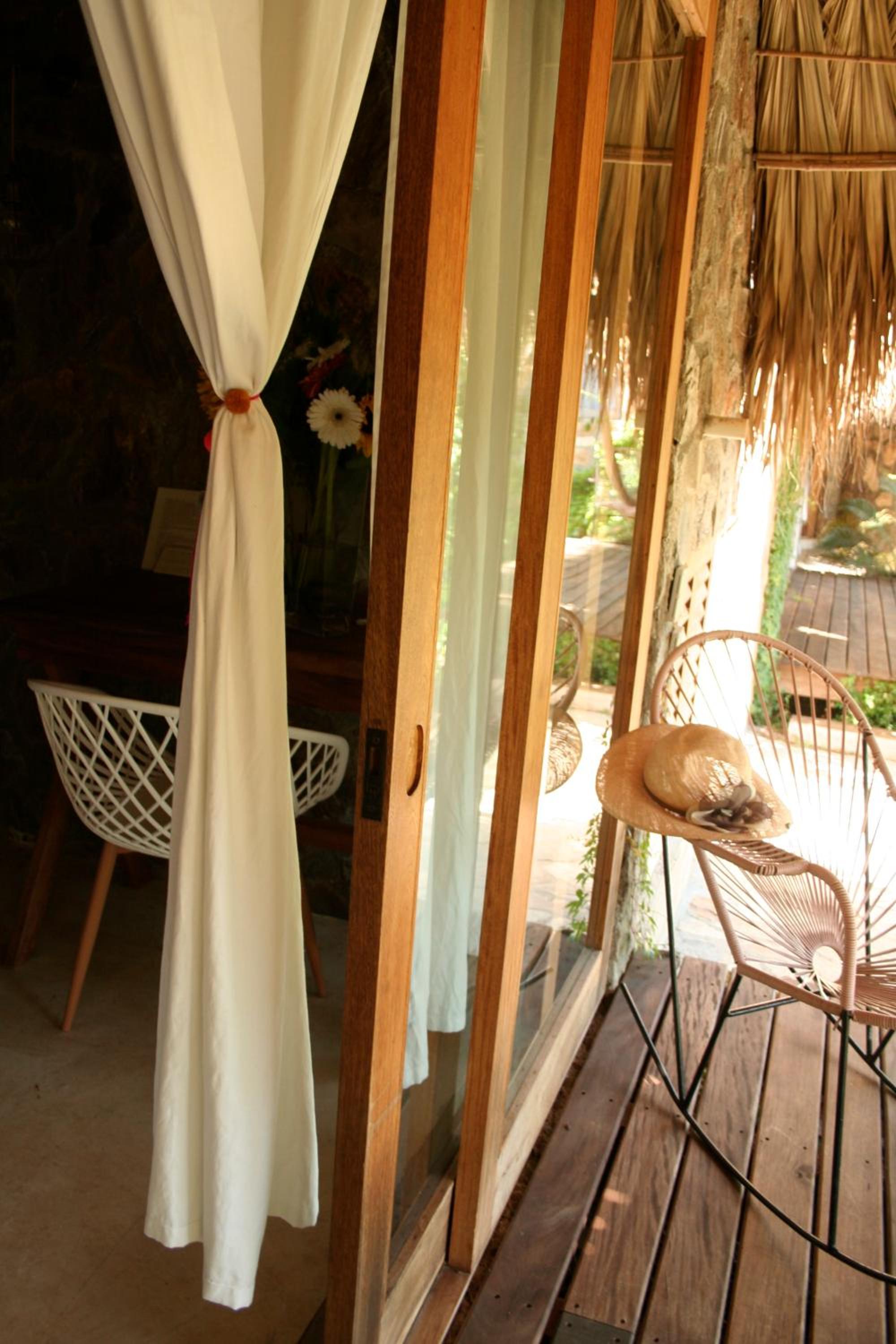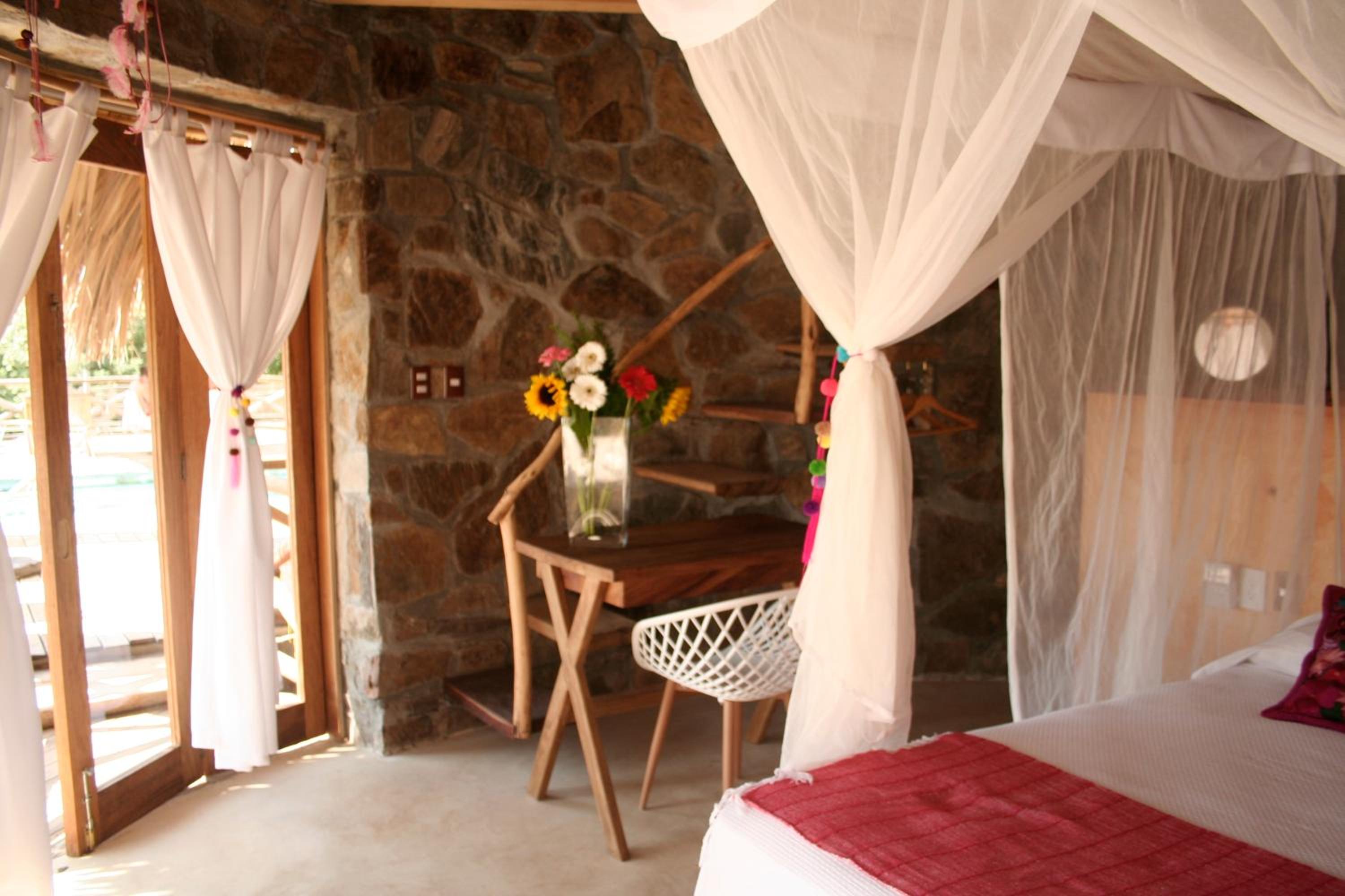 It is not a hotel. Its an air bnb with one local woman on duty. Only Mexican spoken Our sheets were not changed in 6days and we were the only guests. Towels were nylon and changed to old cotton when i complained but with holes in . The open plastic bin was where we were expected to deposit used loopaper as its an ecohotel. Bare in mind this was changed once a day and the bathroom is open onto the bedroom. It is not sanitary.