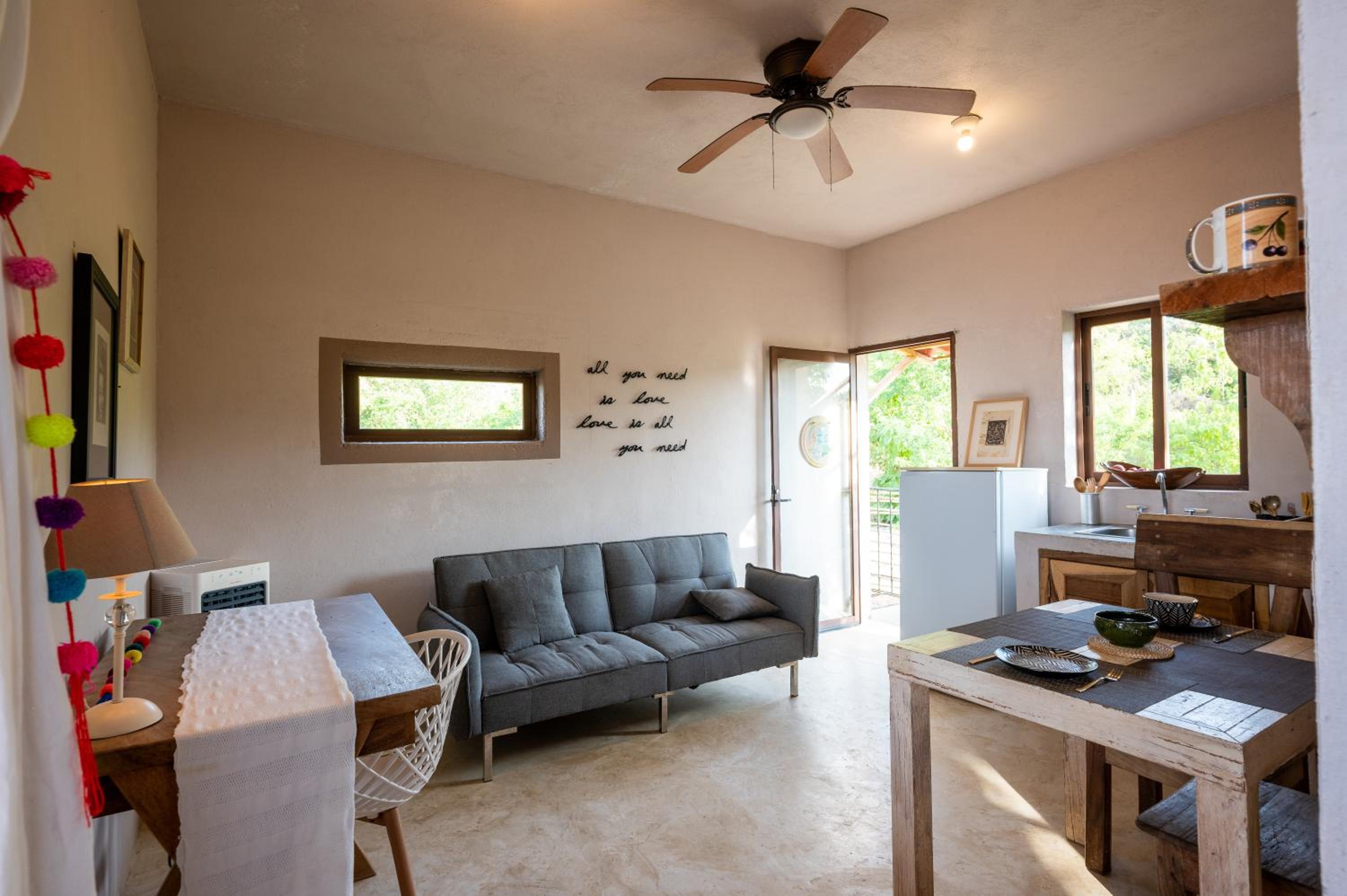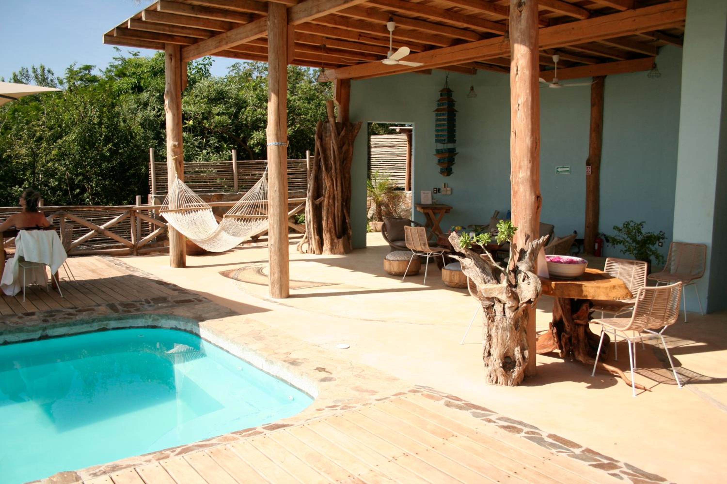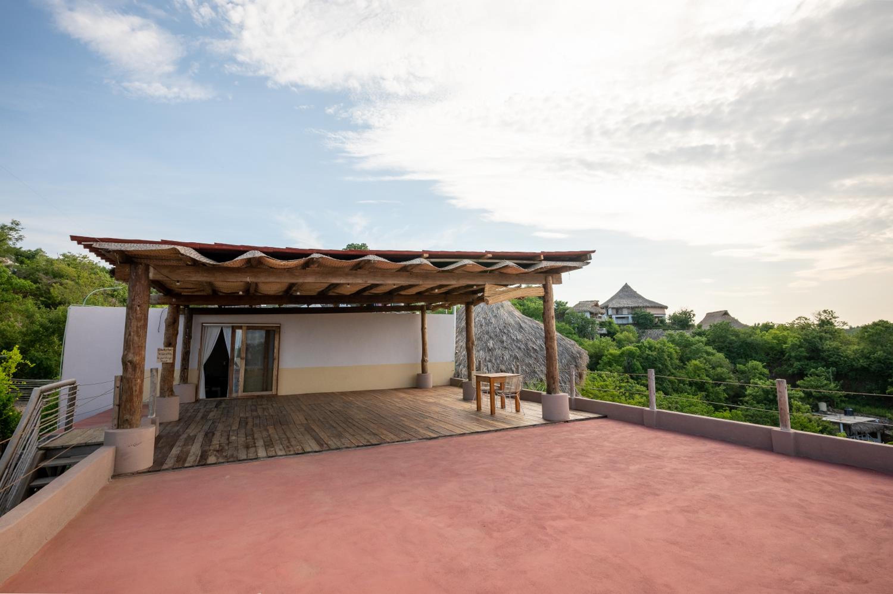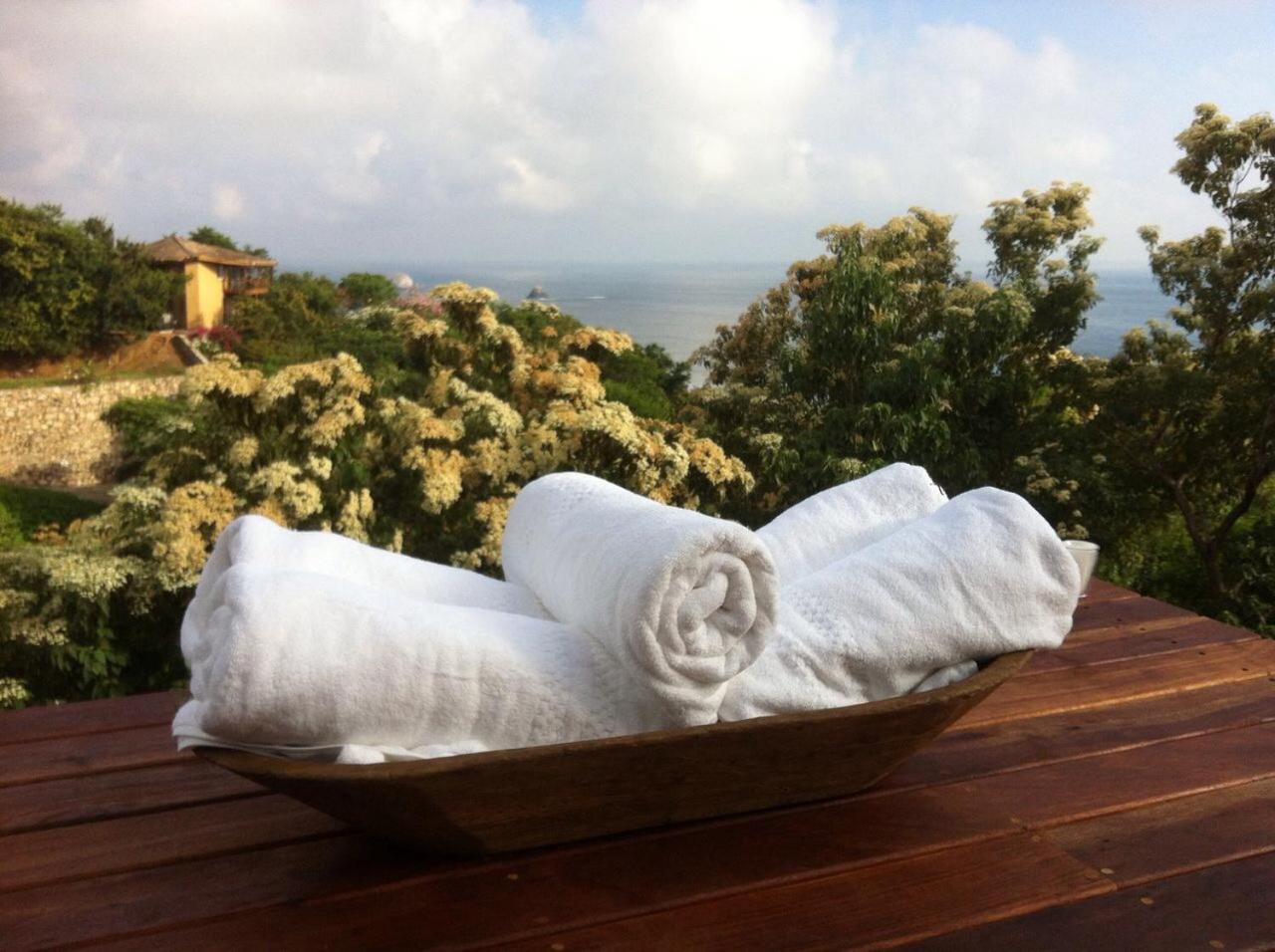 It is not a hotel. Its an air bnb with one local woman on duty. Only Mexican spoken Our sheets were not changed in 6days and we were the only guests. Towels were nylon and changed to old cotton when i complained but with holes in . The open plastic bin was where we were expected to deposit used loopaper as its an ecohotel. Bare in mind this was changed once a day and the bathroom is open onto the bedroom. It is not sanitary.