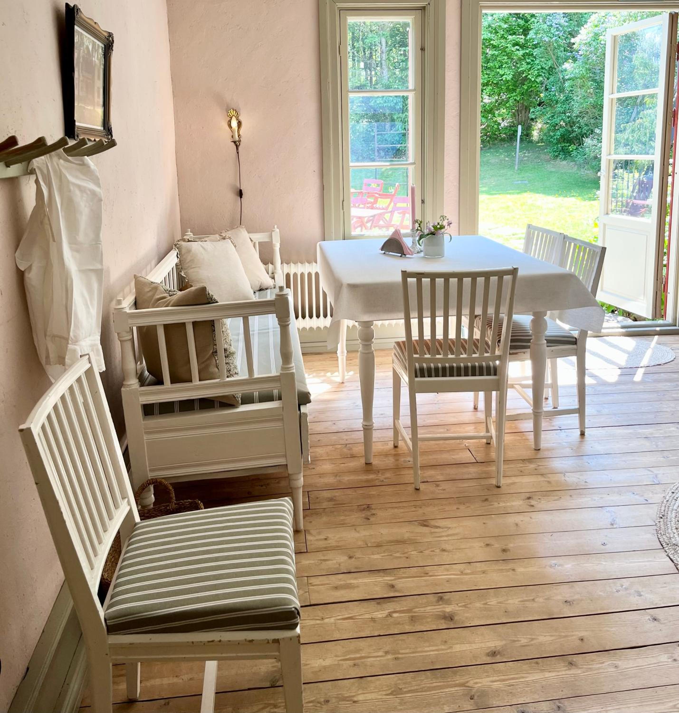 Vackra rum, fantastisk frukostmatsal med levande ljus, kakelugn mm.