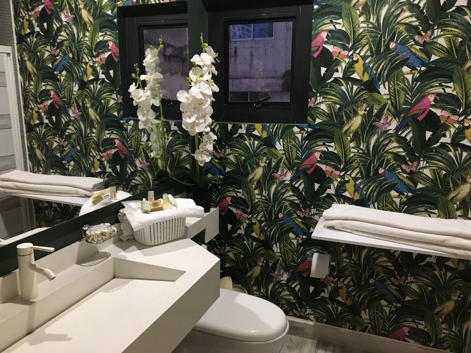 El baño tiene vidrios trasparentes visibles en los apartamentos del frente, al ducharse te pueden ver