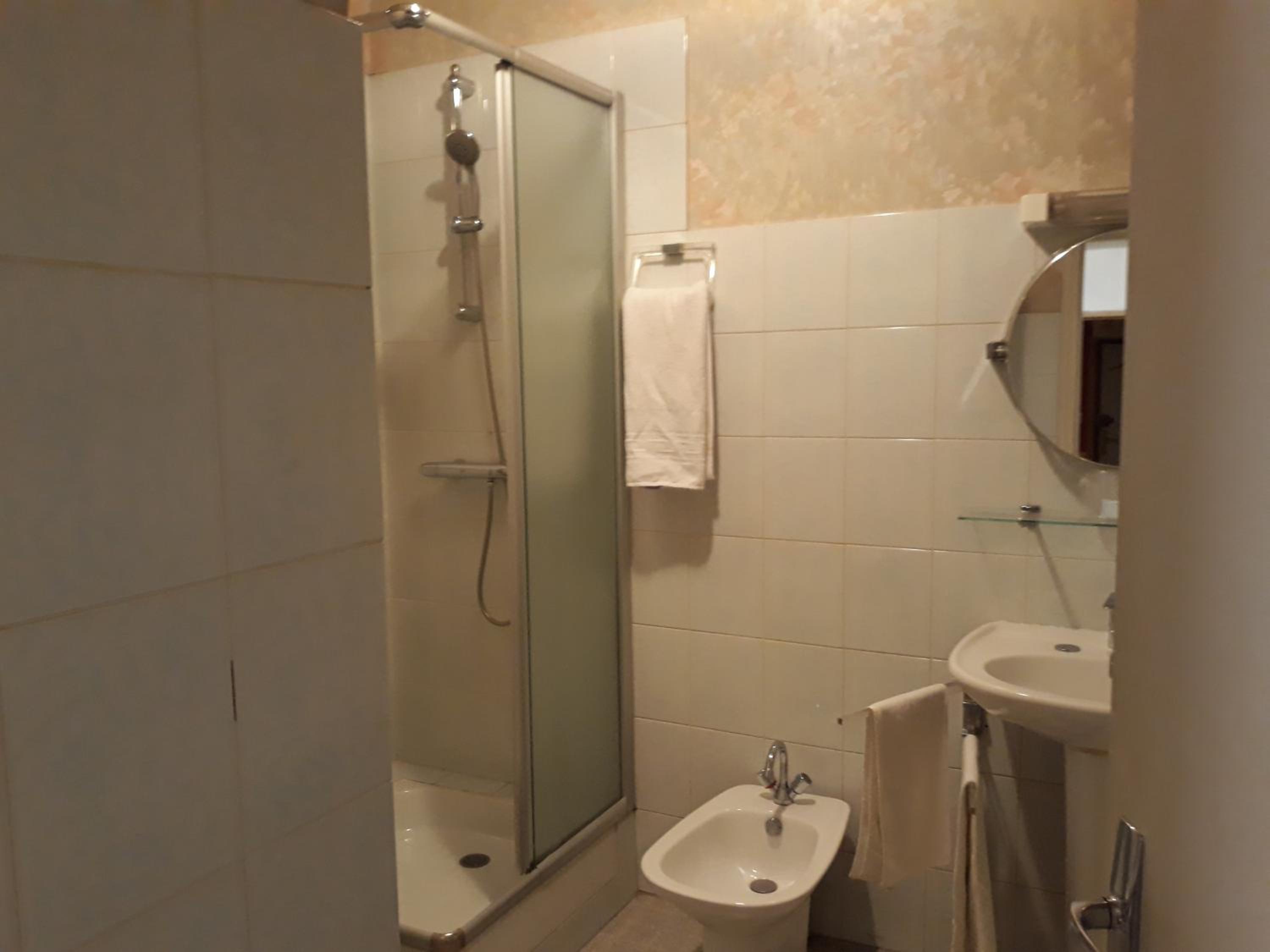 La salle de bain était un peu exiguë.