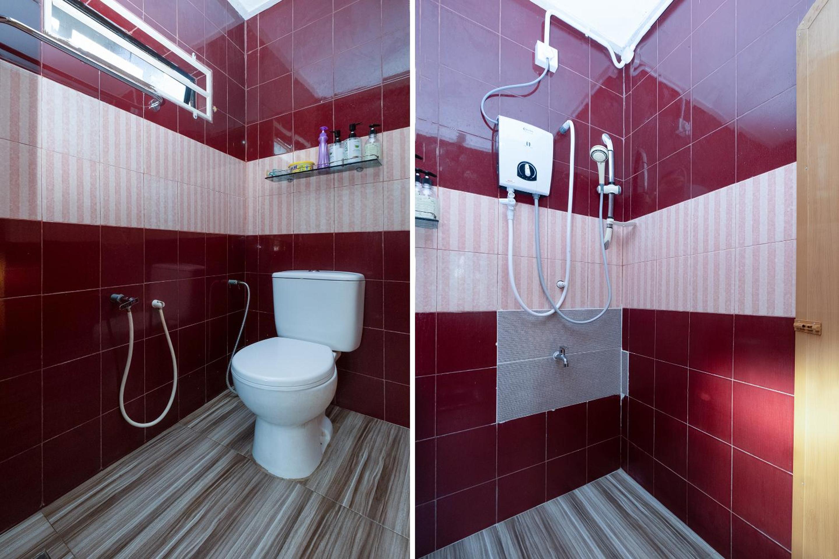 They give 2 bedrooms differentiated by a plywood wall, curtains instead of doors, one toilet between 2 bedrooms, sliding toilet door, shower is directly over toilet bowl so you stand really awkwardly to shower, no toilet roll, one room has cupboard only, the other has charging point only. Furniture is in bad condition, pillow bedsheet stained