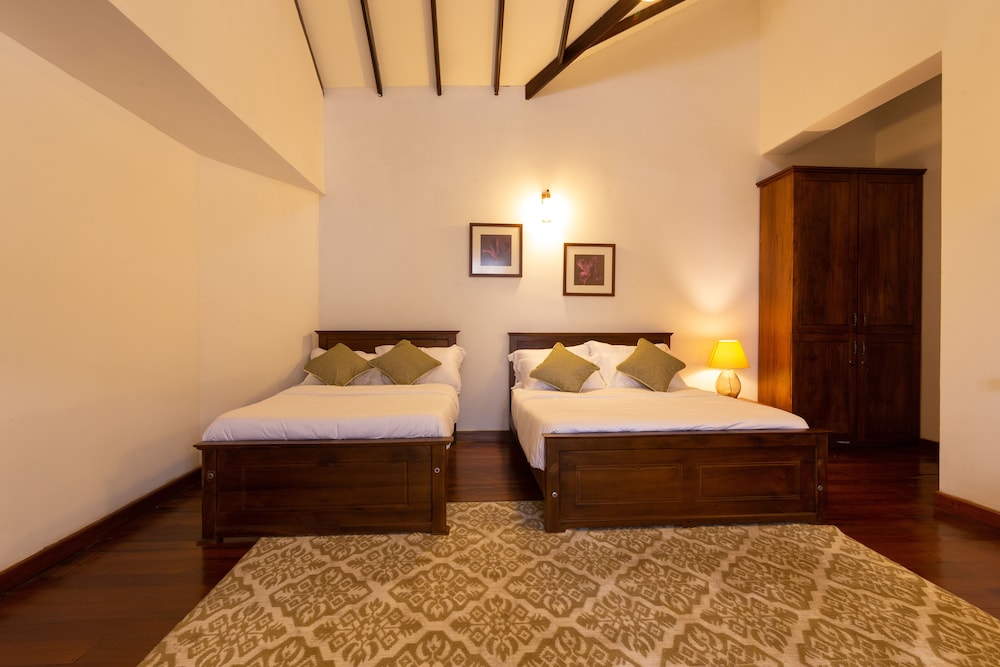 We really enjoyed our stay here, it felt like staying in a cozy home. After moving from hotel to hotel, it felt so nice to come into a warm and comfortable home with a cozy bed. And I liked that dinner and breakfast takes place at a big family table with other guests, once again it felt cozy. But above all, I have to give credit to the incredible service we received. I arrived with a very bad cold, slight fever, etc. Soon after we arrived and he saw I was sick, Madhavan came to our room with a steaming bowl with ginger and lime leaves and some ayurvedic medicine to help with my congestion. He repeated the same action twice more during our stay, and was so so kind, bringing me tea constantly, asking how I was, etc. All the employees at the hotel were above and beyond with their service and attention, and Madhavan's kindness with me will be remembered long after our trip. Oh - and they have a gorgeous swing in the garden where you can lounge about and read on. If you're tired of staying in impersonal hostals and are looking for a cozy stay in a big comfortable house, look no further :)