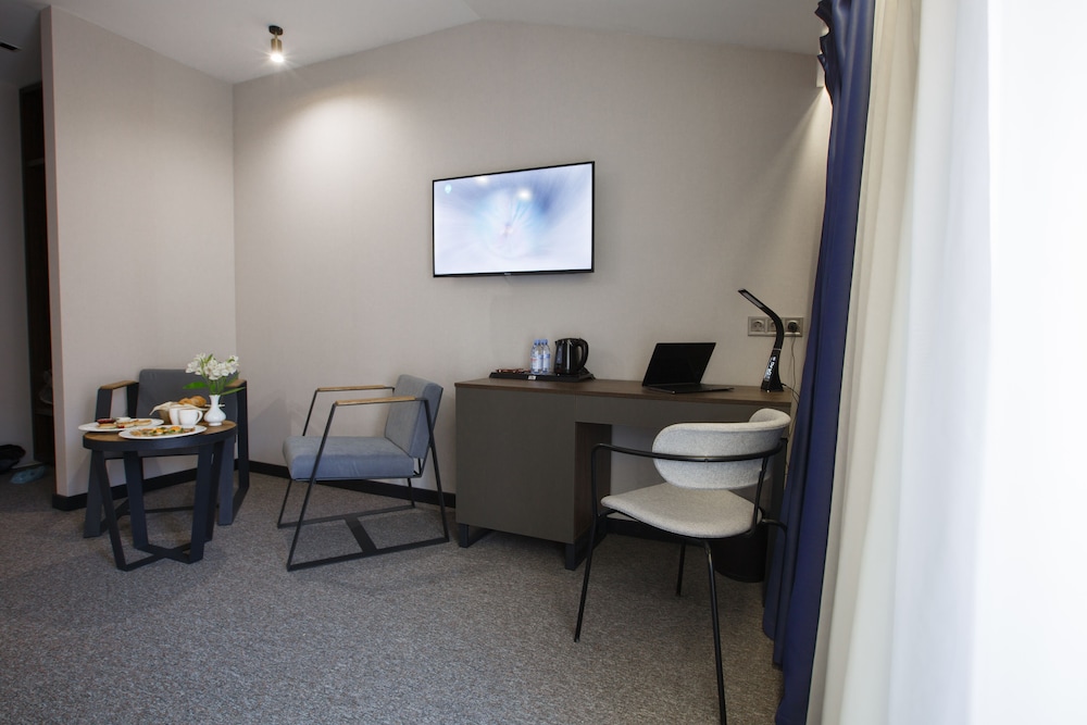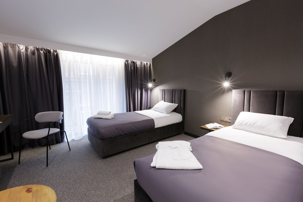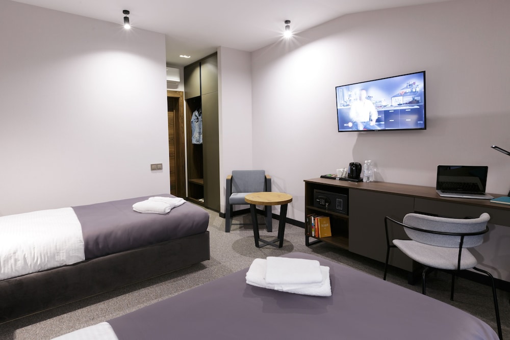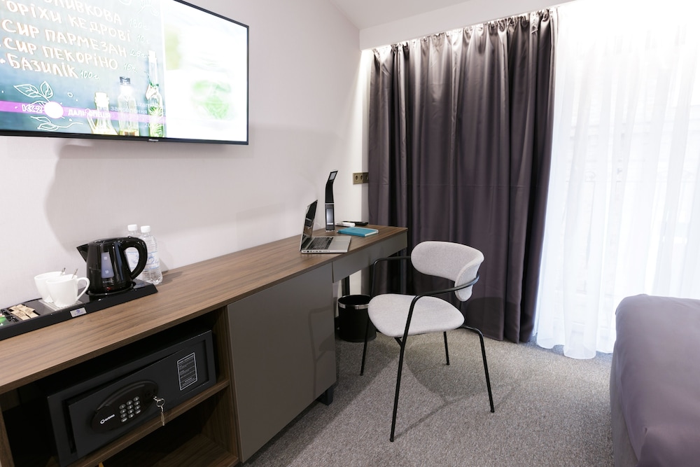 Гарний новий готель. Великі ліжка з ортопедичними матрацами. Є сейф та невеликий міні-бар. Сподобалося, що в номері стоїть письмовий стіл, за яким зручно працювати, та ловить досить швидкий Wi-Fi. Для бізнесу – ідеальне місце, на мою думку.