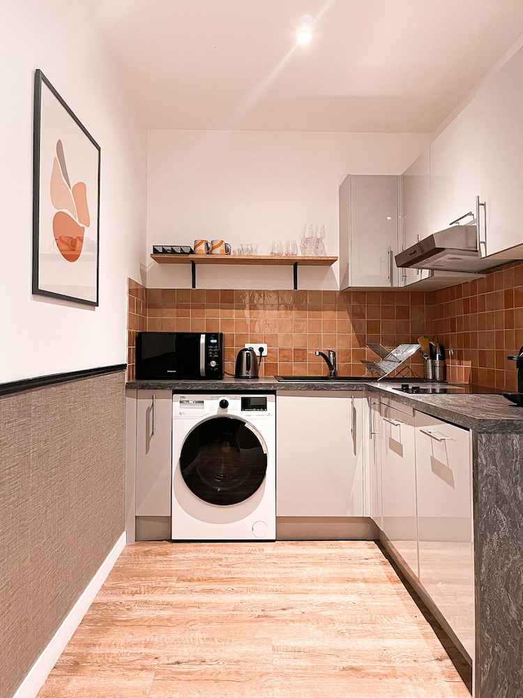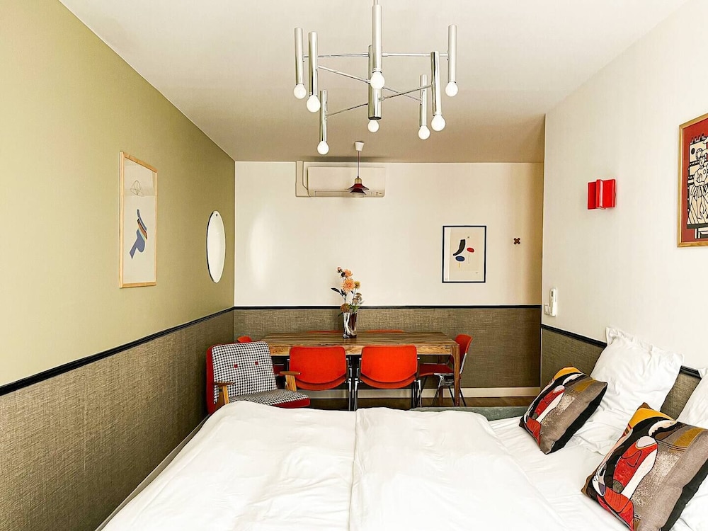We stayed here as a family of 4 (2 teens) for 7 nights. Communication was excellent and we were able to check in 2 hrs early. The apartment was exactly as shown, and 2 bedrooms were in quiet area facing courtyard. The only issue was with washer:dryer as not enough instructions and didn’t really dry clothes? The sink in bathroom was clogged but they fixed the same day so no problem. This area felt safe to walk, was quite close to shopping 10 min to metro and had cute stores! We would definitely stay here again and loved our apartment for this trip!