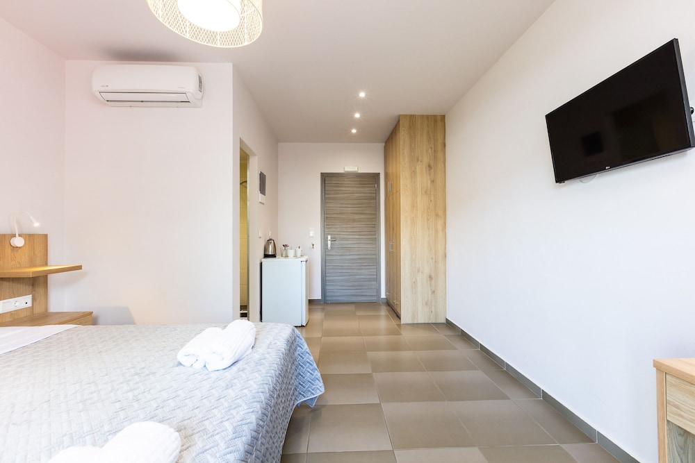 Das Zimmer entsprach der Beschreibung und den Bildern und war sehr sauber. Super Wasserdruck in der Dusche. Sehr gutes Wlan. Sehr schöner Pool und Taverne. Das Frühstück war in Ordnung.