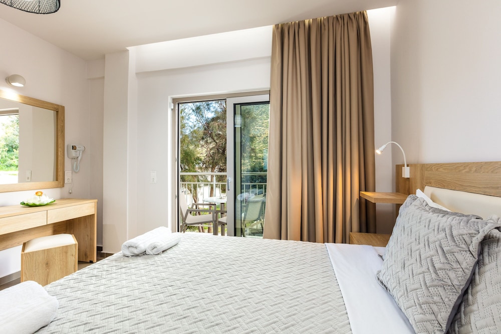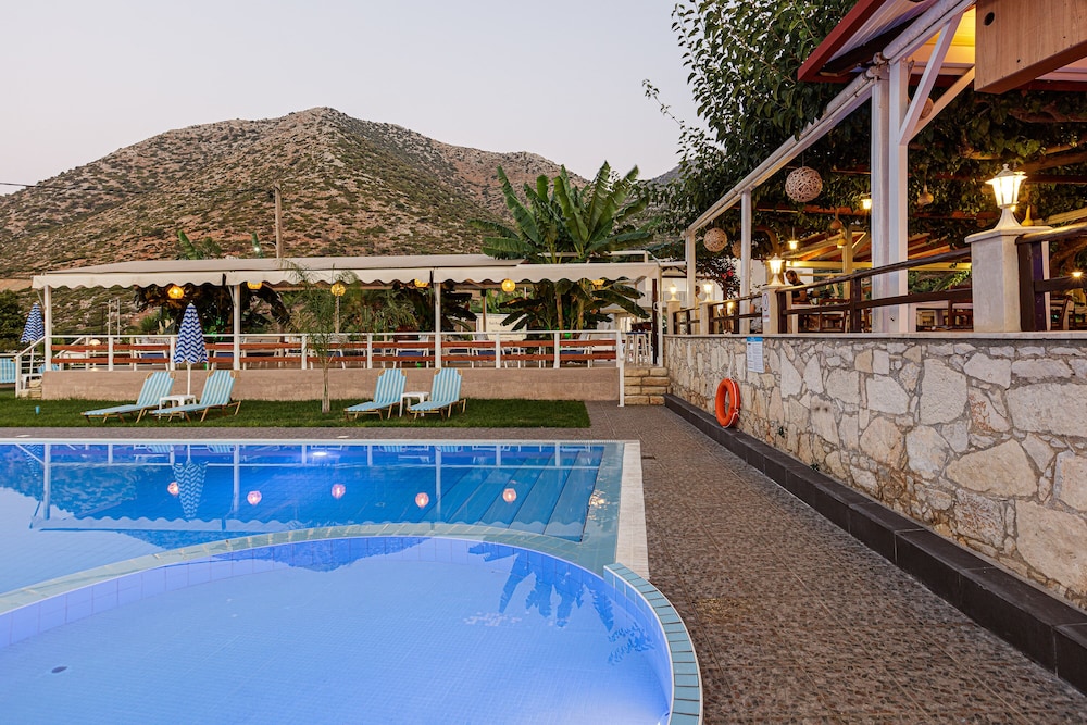 Schönes kleines Hotel mit schönem Pool zur Entspannung! Die Zimmer sind modern renoviert und zweckmäßig eingerichtet. Die Lage ist gut- zum Strand sind es nur wenige Meter. Bus hält in der Nähe, im Ort kann man Ausflüge buchen- ich würde einen Mietwagen empfehlen, den gibt es zu angemessenen Preisen in der Nähe. Frühstück und Essen in der Taverne sind gut, es gibt auch Tavernen in der Nähe. Wir kommen sicher noch mal wieder.