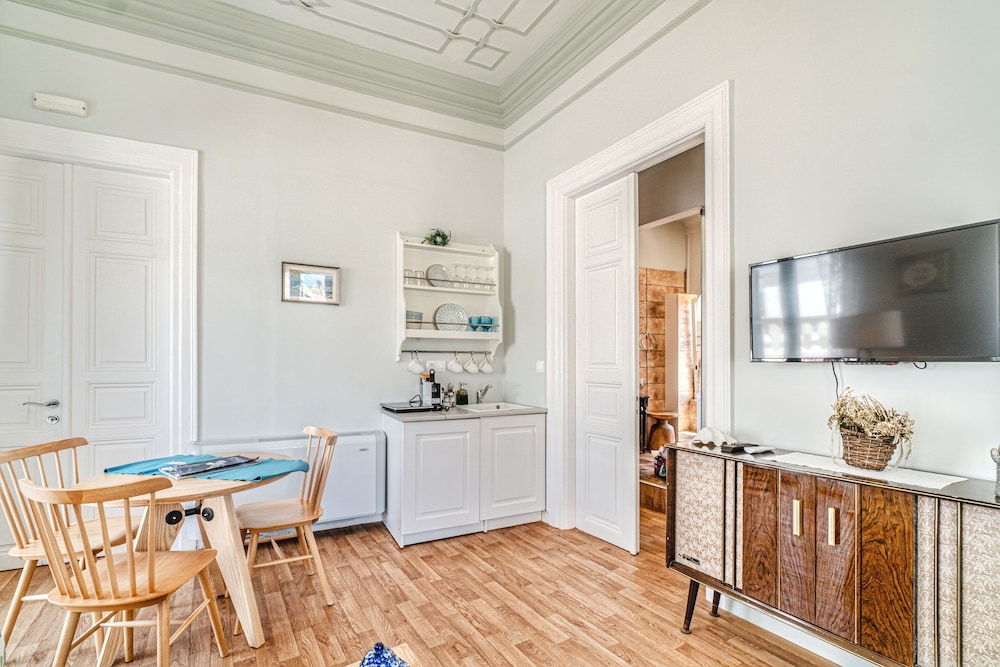 The apartment is large with a very comfortable king bed a little noisy at times but didn’t really bother us. The kitchen is small ok for light breakfast but not more. The bathroom was large and comfortable with a washing machine that worked well. Quite a long walk from parking but on a beautiful marbled car free path. If we had any questions they responded very quickly.
