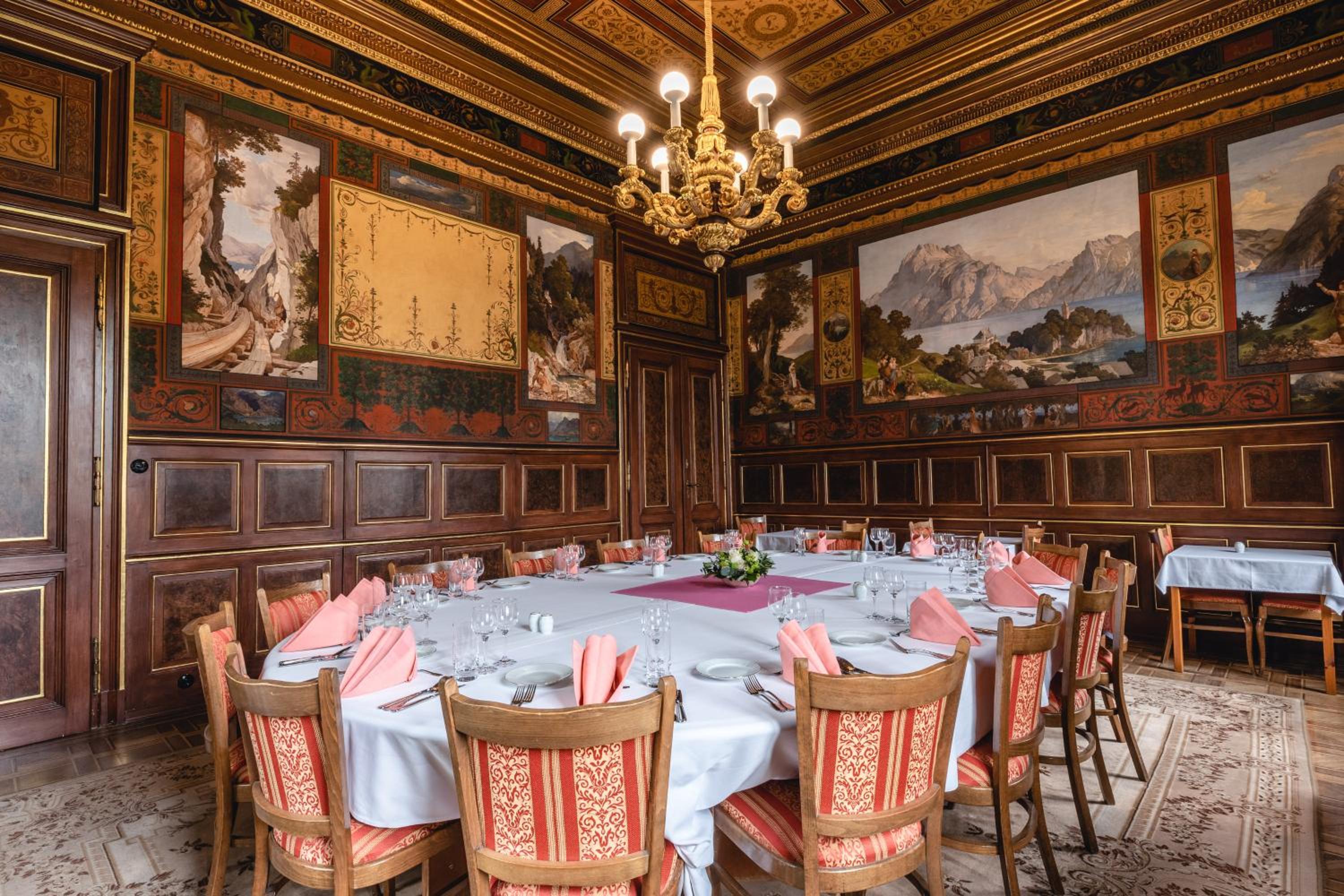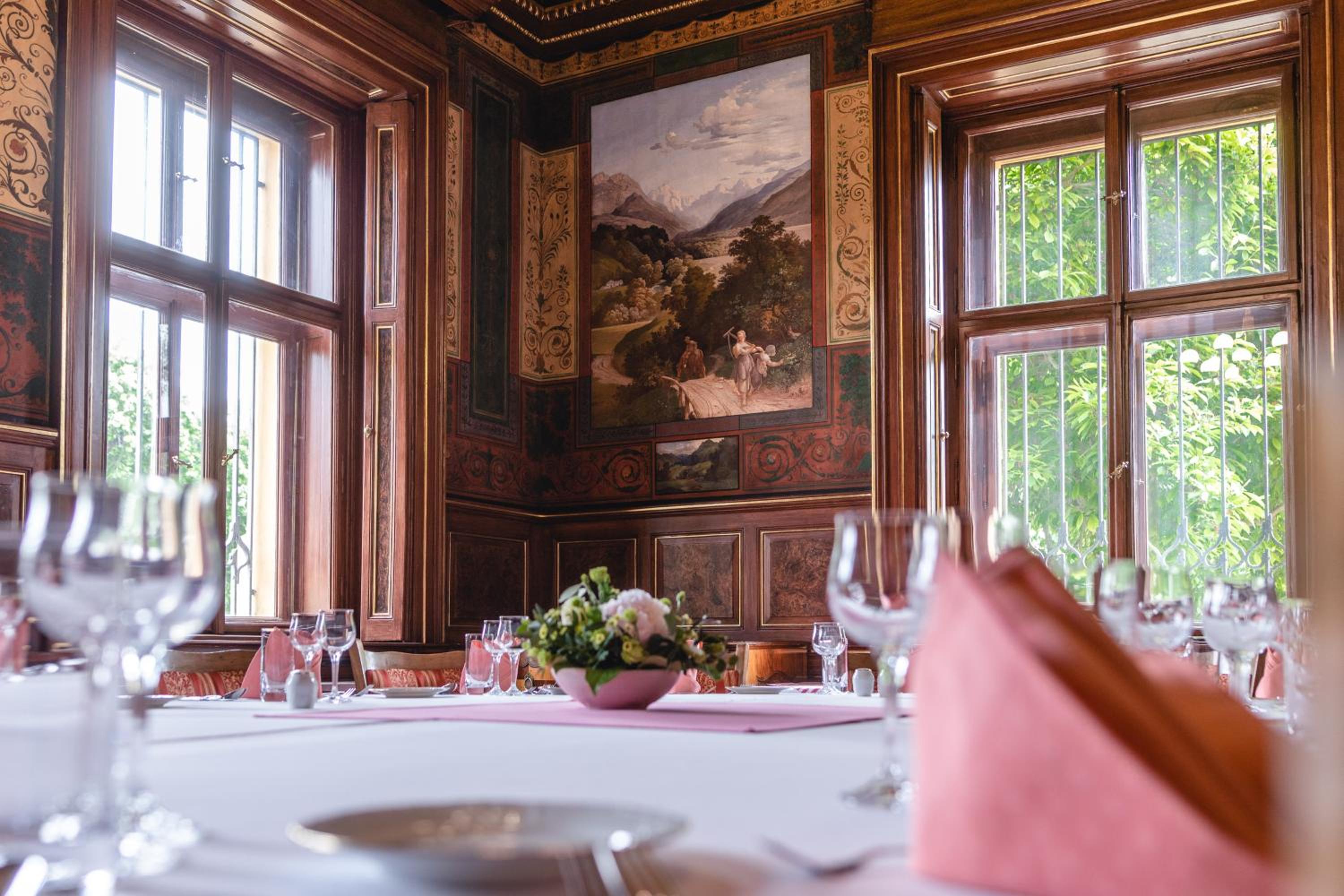 Snídaňový salon z iluzivními malbami horských krajin ve mně vyvolaly nostalgii a vášeň pro putován