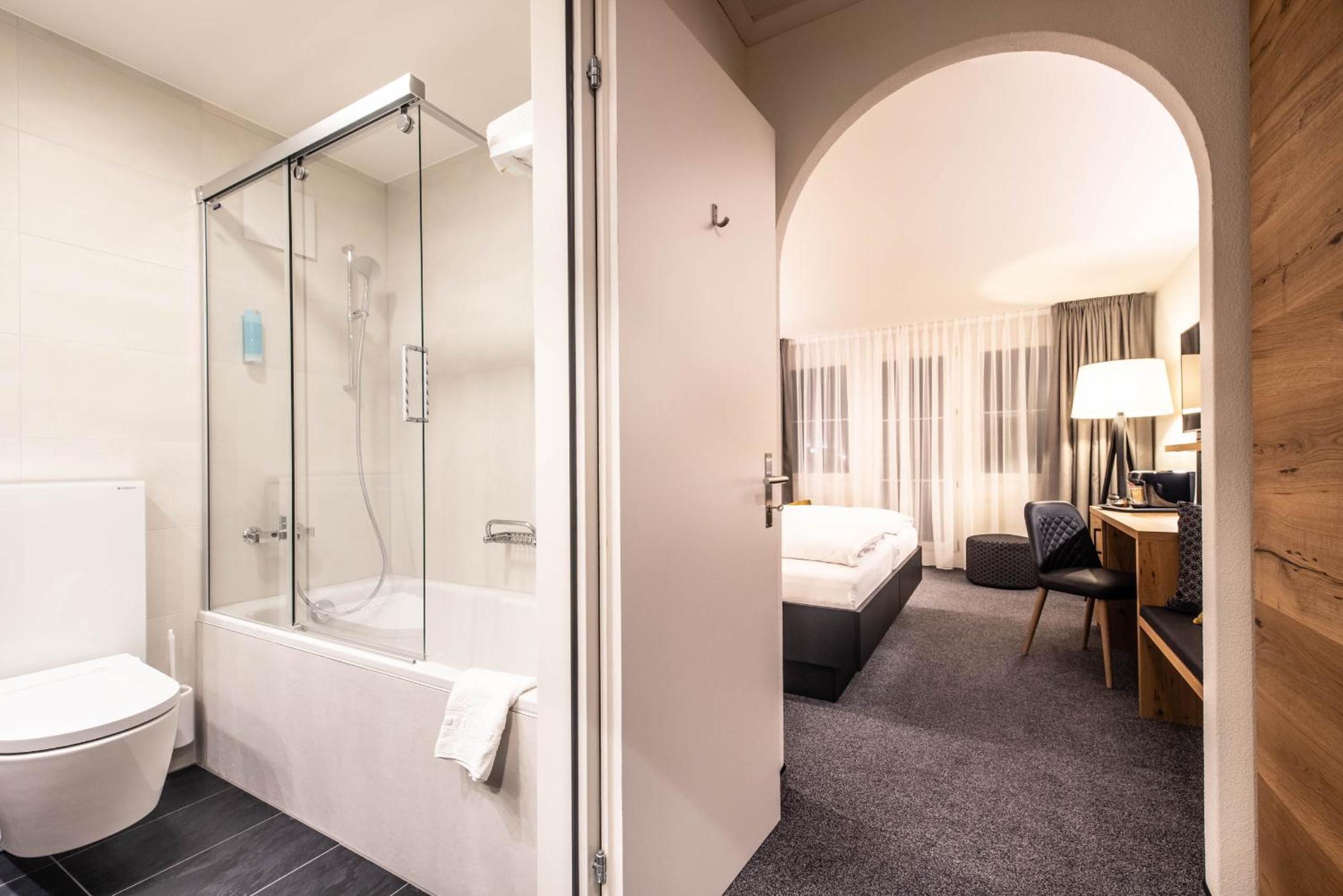 Nette en ruime kamer en badkamer. Veel keus bij het ontbijt. Midden in Andermatt en je kan gratis parkeren bij het hotel.