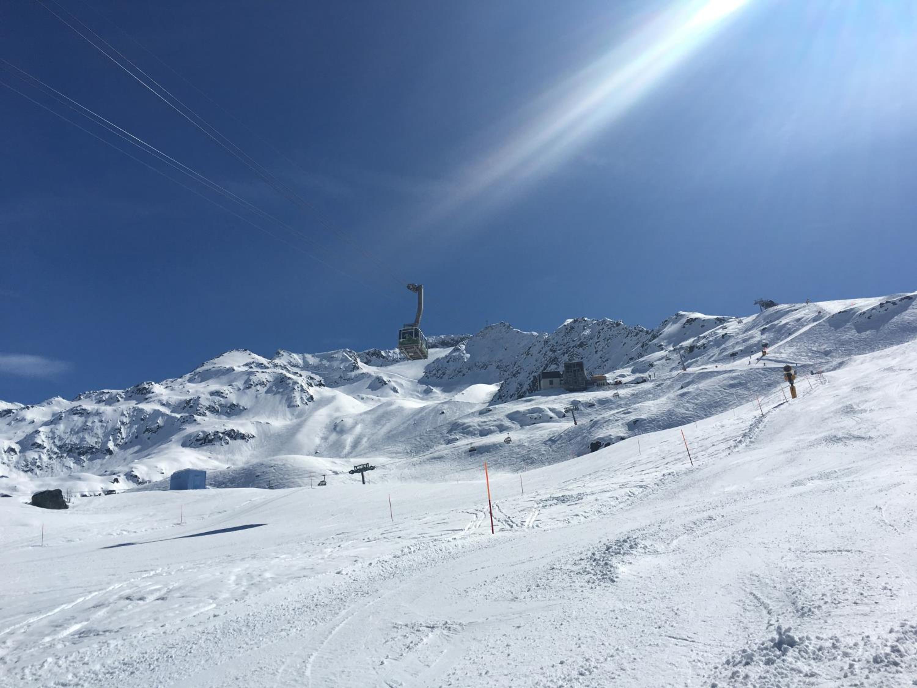 Convenient location above the supermarket, close to restaurants, 6-7 min. on foot to lifts.