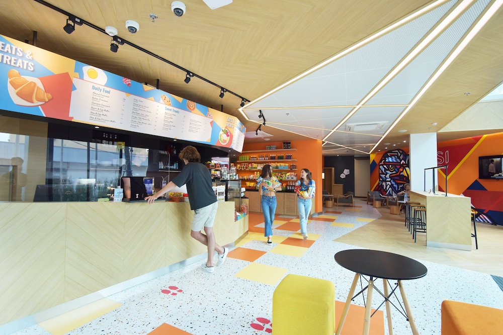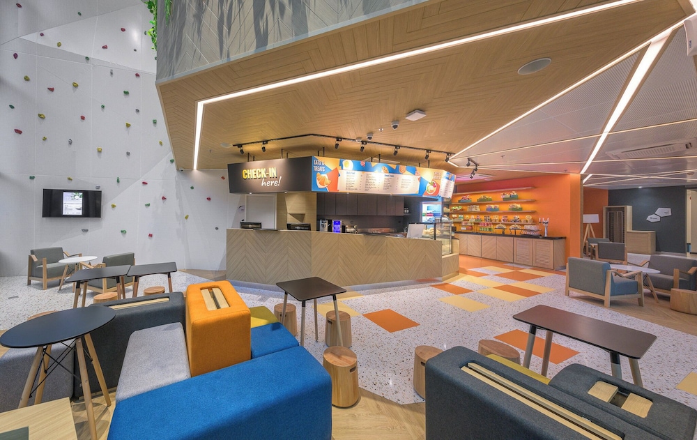 Nice hotel, very clean. My only issues were the steps leading to the property are painted to create an optical illusion. Terrible for disabled people like me. Thankfully there was a ramp. No where to sit in the room except a bean bag. So hotel designed for young fit people.
