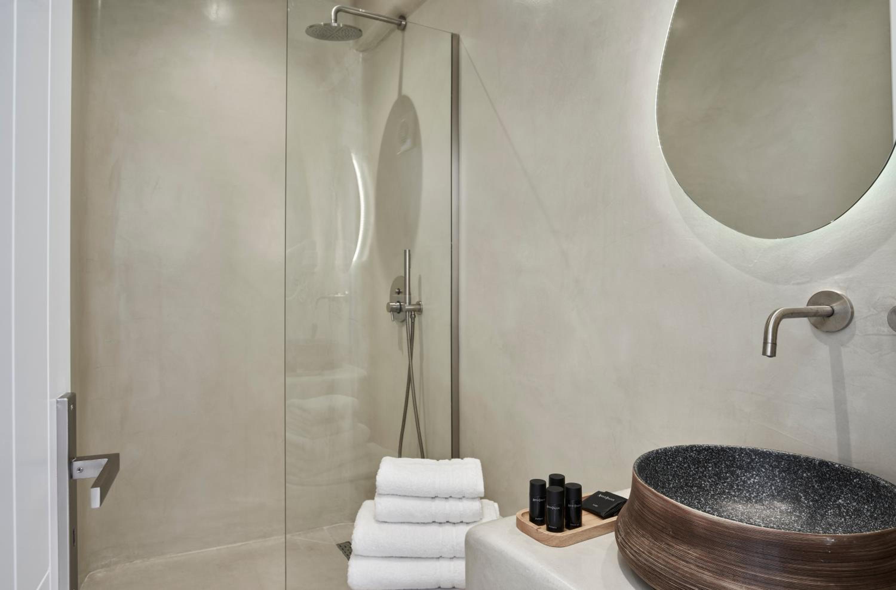 Galation offers air-conditioned guest accommodation in Mýkonos City, boasting city views and proximity to popular beaches like Megali Ammos and Agia Anna. The rooms are elegantly furnished with modern amenities including a coffee machine, flat-screen TV, and free WiFi. Some rooms even feature a terrace with stunning sea views, providing the perfect setting for relaxation.