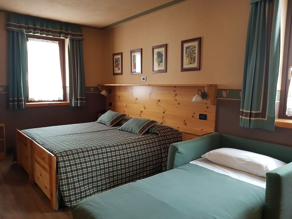 Albergo accogliente, arredato con cura e stile di montagna. Pavimento della camera in parquet, bagno finestrato con doccia, box coperto. Buona la colazione con diverse torte fatte in casa.