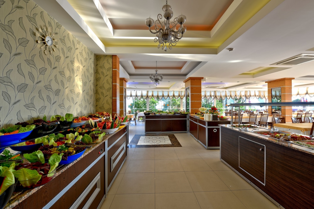 Das Zimmer war einfach. Die Klimaanlage funktionierte sehr gut. Es war schön, dass ich einen Balkon hatte. Der Strand ist gegenüber der Straße, Fußweg zum Meer in 1min. Super. Das Personal war teilweise sehr freundlich, teilweise jedoch nicht sehr interessiert, obwohl nur wenige Gäste (ca. 15-20, die meisten aus der Türkei und Russland) dort waren. Der Swimmingpool ist klein aber ok. Die Gratisgetränke gibt es nur von 10 Uhr bis am frühen Abend, was für diese Preisklasse ok ist. Jedoch das Essen war teilweise ungenießbar, der Rest essbar aber nicht gut oder noch nicht ganz aufgetaut aus der Gefriertruhe. Nicht selbst gekocht! Nur Tiefkühlprodukte der billigsten Kategorie! Brot gab es meistens nur altes. Wenn man dorthin fährt, sollte man bedenken, dass es besser ist wo anders zu essen. Oft bin ich zum Restaurant gegangen, das gleich gegenüber dem Hotel ist. Dort konnte man richtige türkische Küche genießen. Chaotisch auch bei der Besteckausgabe. Man musste sich das Besteck selbst abholen, und für eine Serviette musste man das Personal extra erinnern! Sonst hatte man Pech! Zum Frühstück gab es zum Trinken nur Tee oder Kaffee, es gab keinen Kakao! Für Kinder also nicht sehr geeignet!
