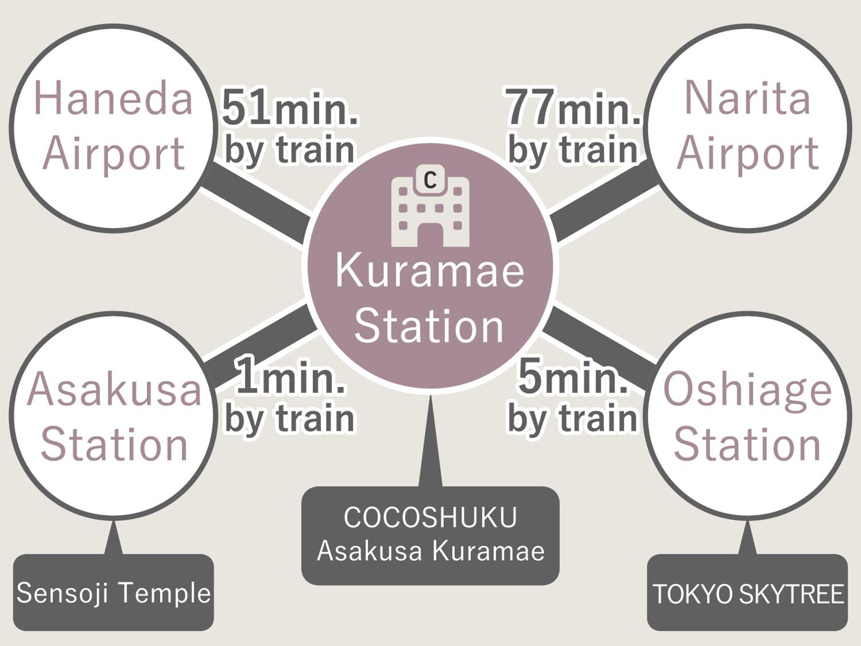 Convenient Location: Situated in the heart of Taito district, COCOSHUKU Asakusa Kuramae is just steps away from cultural landmarks like Kuramae Jinja Shrine and Hulic Hall.