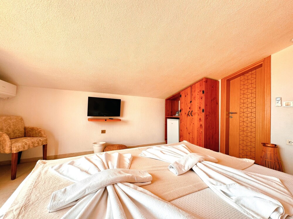Öncelikle harika bir konumda palamutbüküne yürüme mesafesinde 2dk. Otel genel olarak çok iyi Aylin hanım ve ekibi sürekli bir şeye ihtiyacınız var mı diye sizlerle ilgileniyorlar. Odanızda çayınız kahveniz sıcak su için su ısıtıcınız oluyor. Kahvaltıda Aylin hanımın annesinin yaptığı mükemmel reçellere kelime bulamadık karadut enfesti. Kahvaltı çok çeşitliydi aşırı doyurucu ve lezzetli aynı şekilde taze meyve ve sebzelerle donatmaları da çok ince bi düşünce. Her anlamda memnun kaldık hiç tereddütsüz tercih edilebilir
