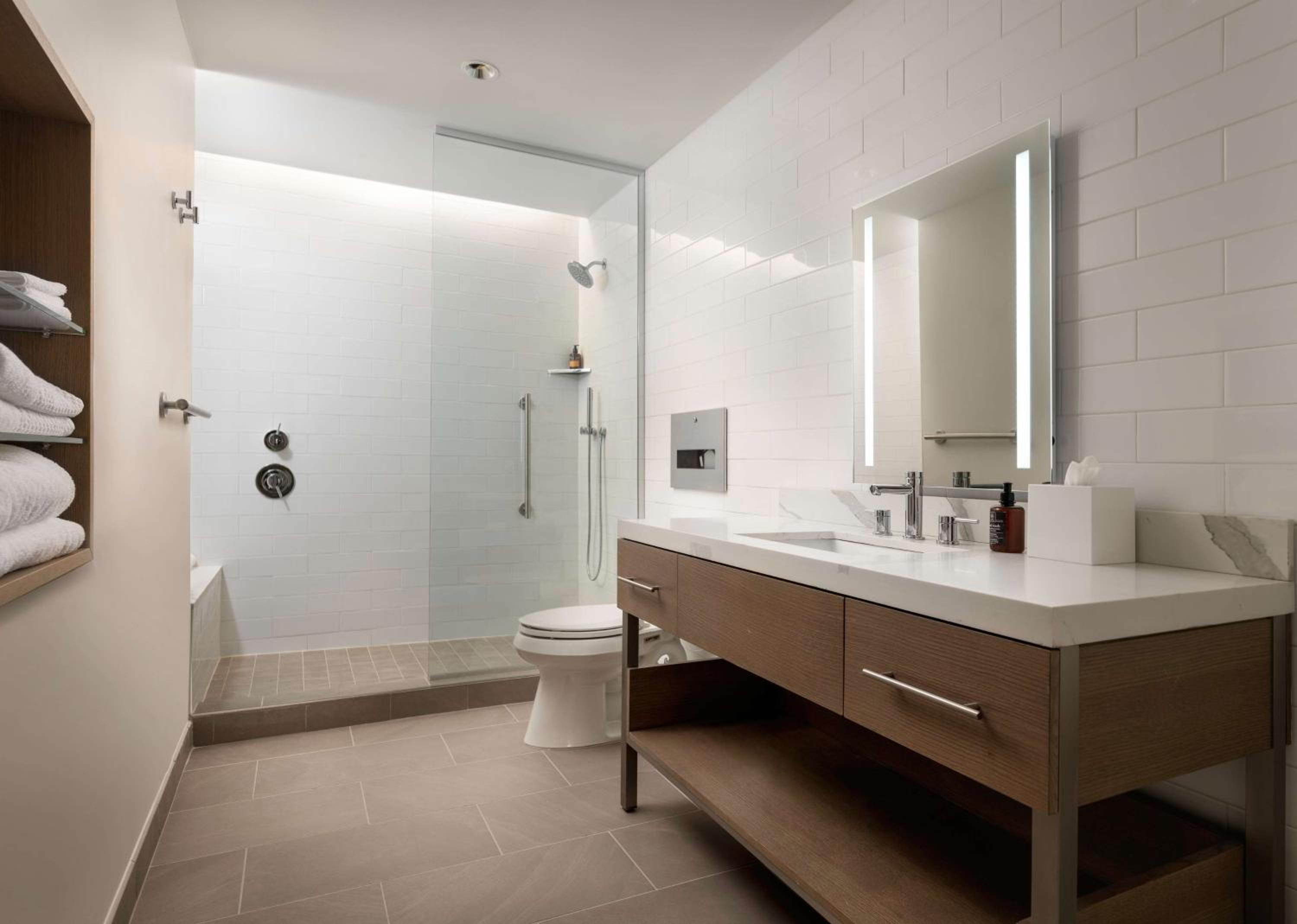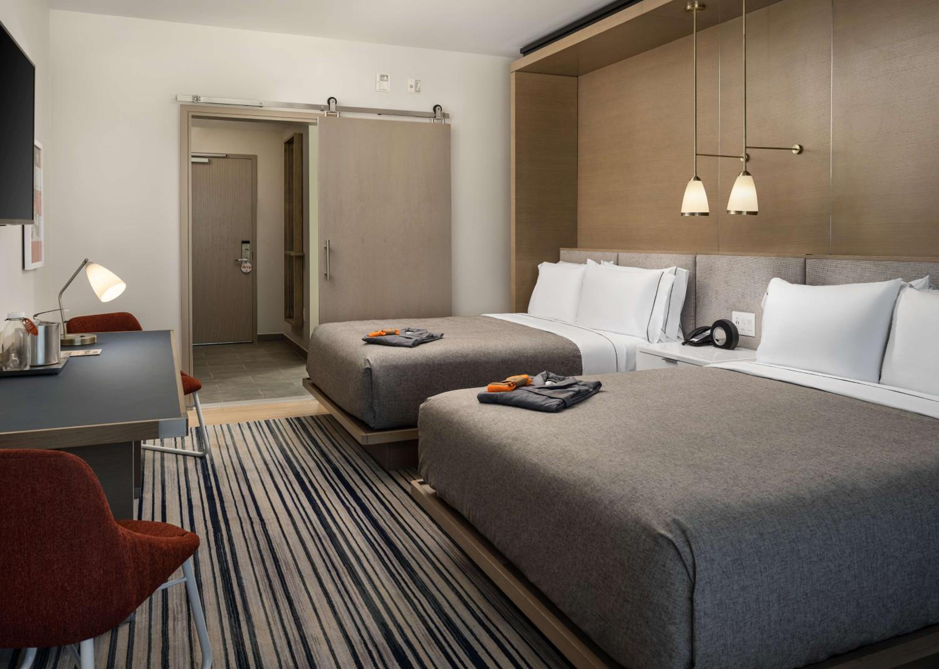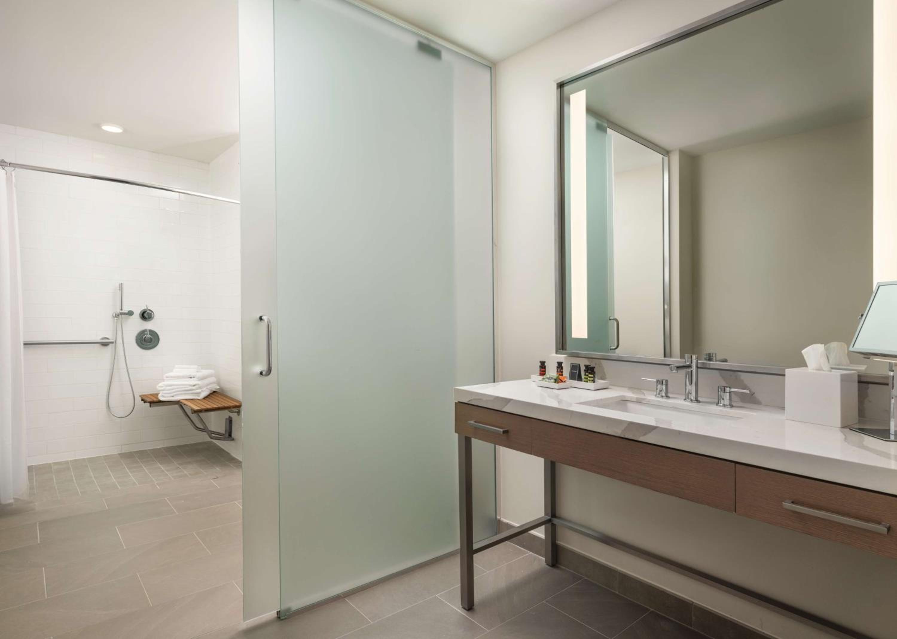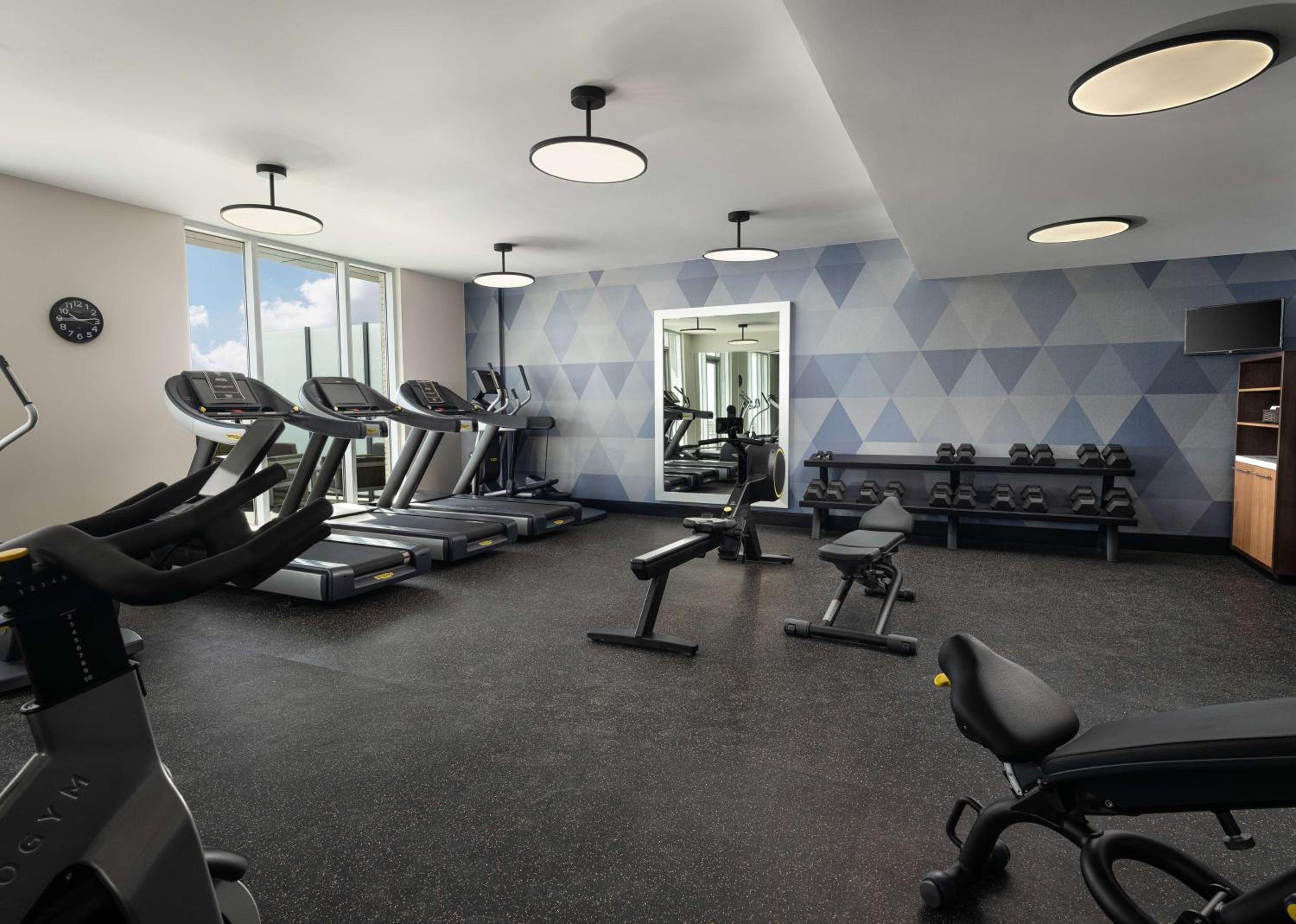 Convenient location. Comfortable lobby with a lovely outdoor seating area. Well-designed spacious rooms with lots of storage. Zeff was very helpful in the breakfast/restaurant area. The front desk was helpful and efficient, and the workout area was well-equipped.