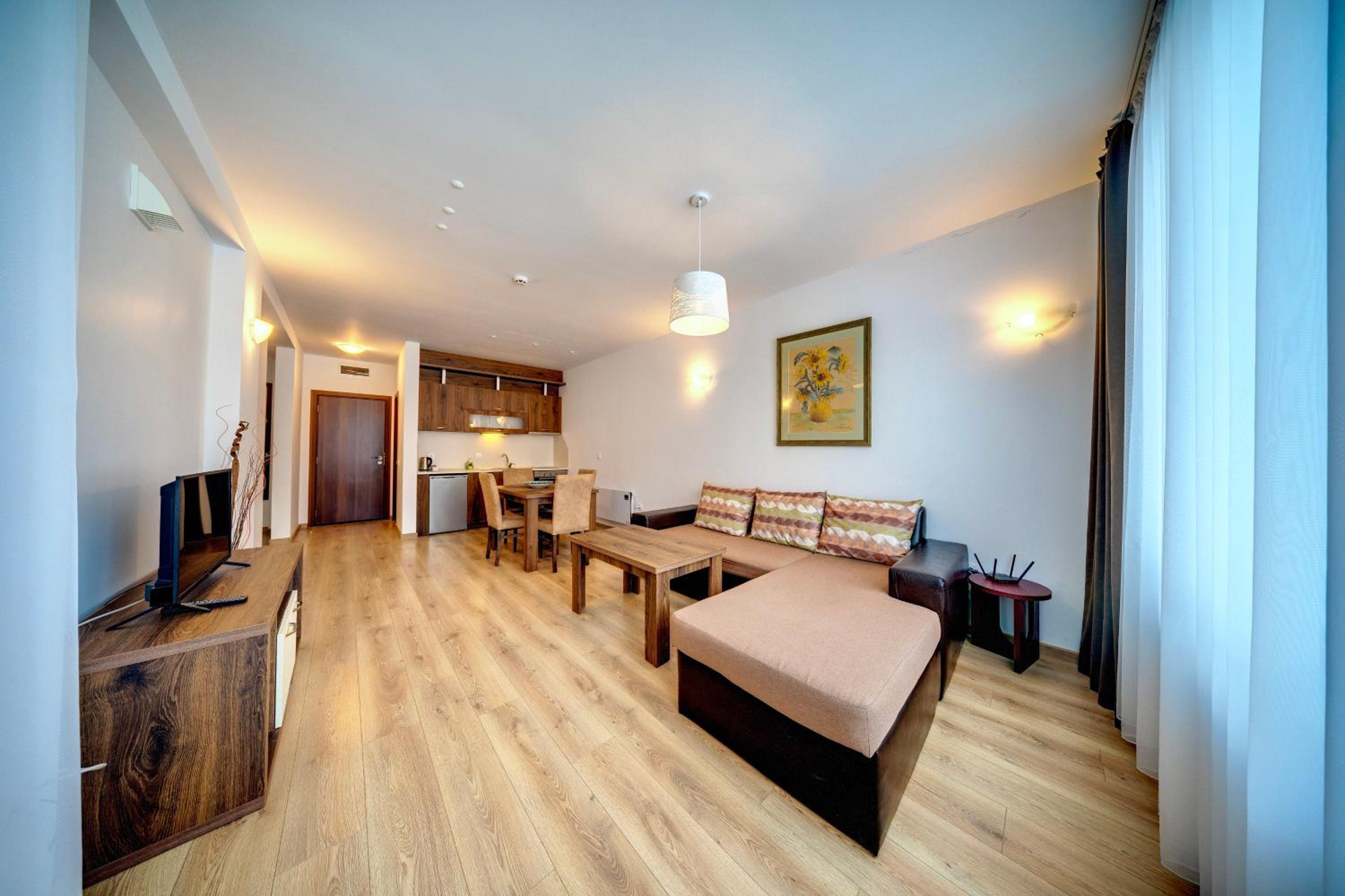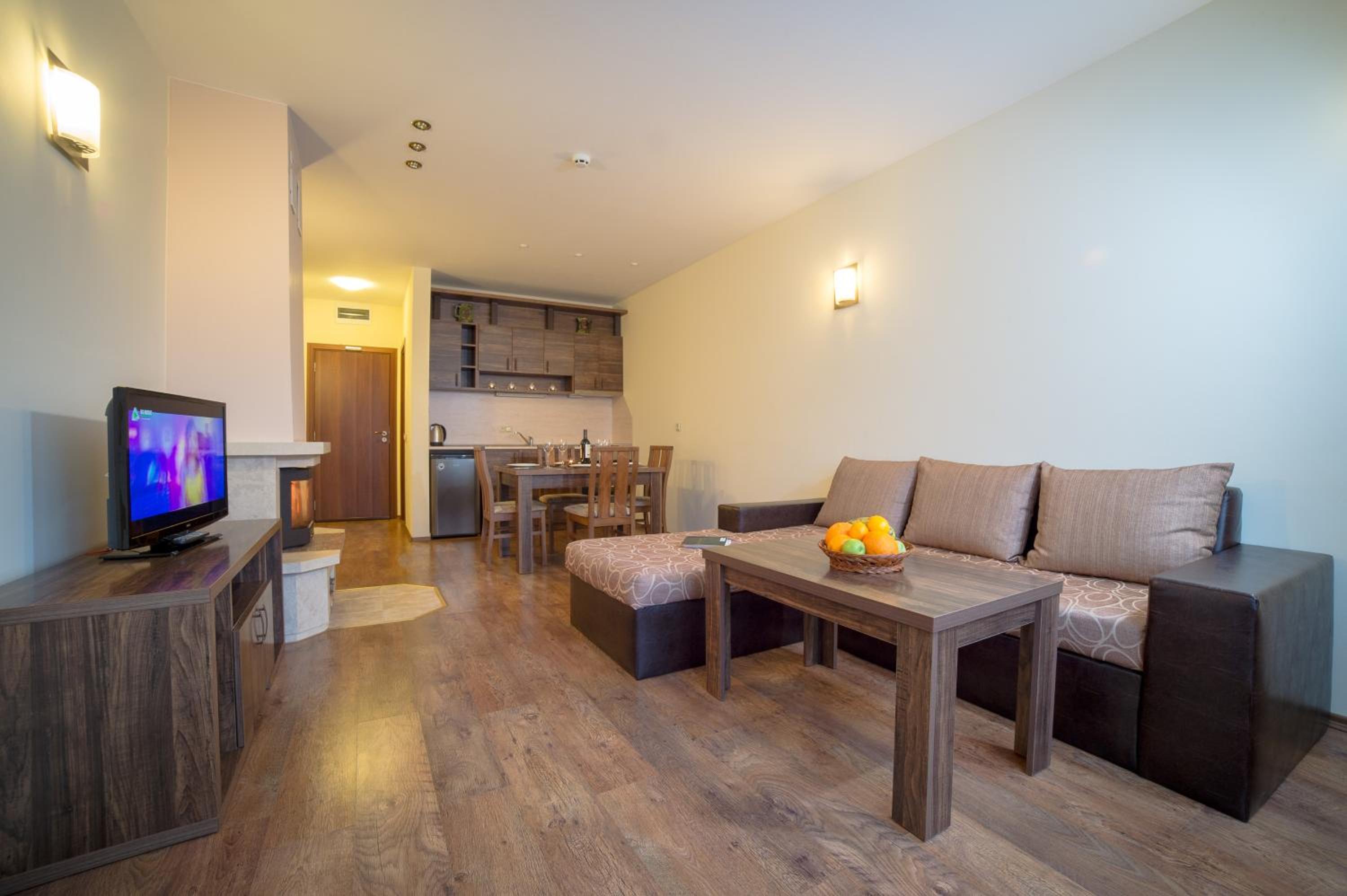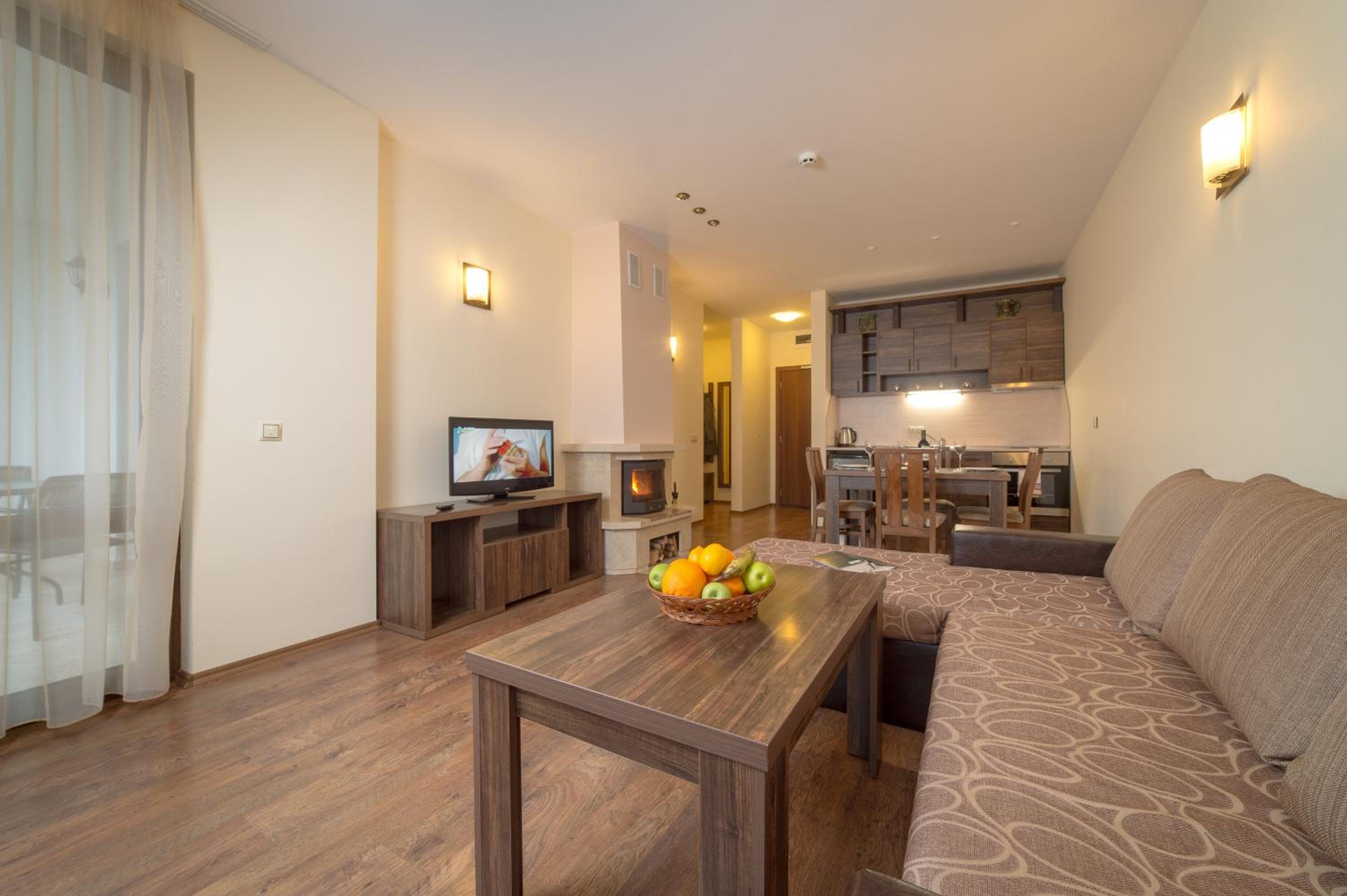 Each room features a flat-screen TV, electric kettle, and a luxurious en-suite bathroom. Upgrade to a unit with a spacious living room and a well-equipped kitchenette. Step out onto your private balcony and soak in the mountain views.