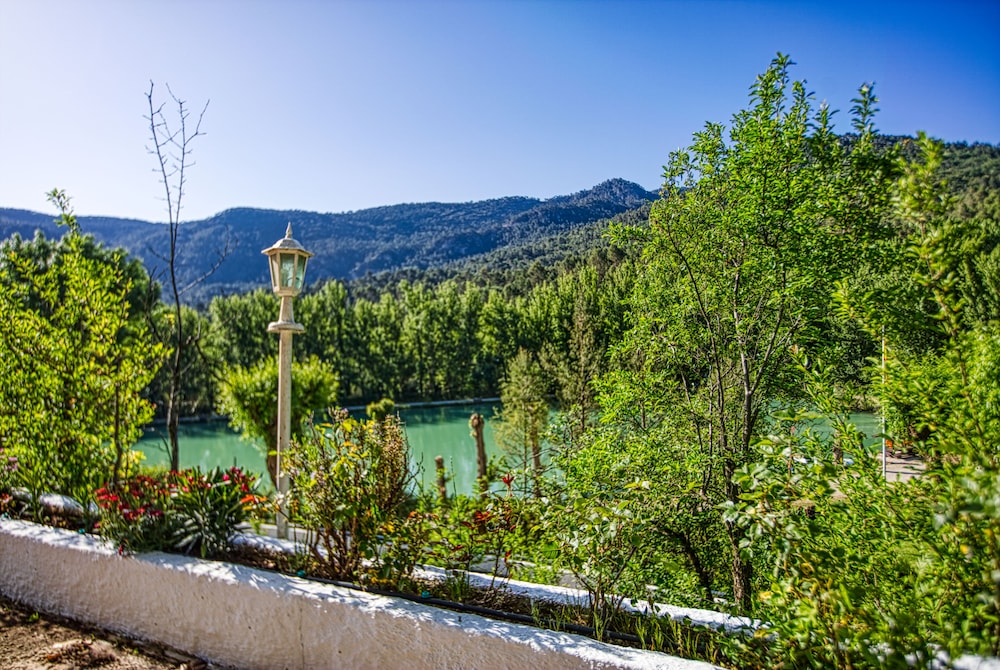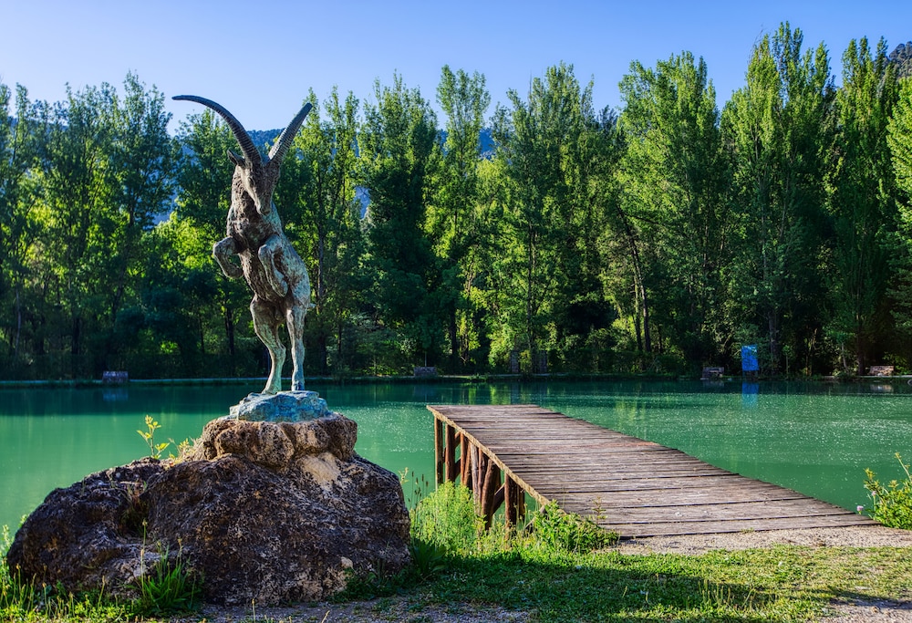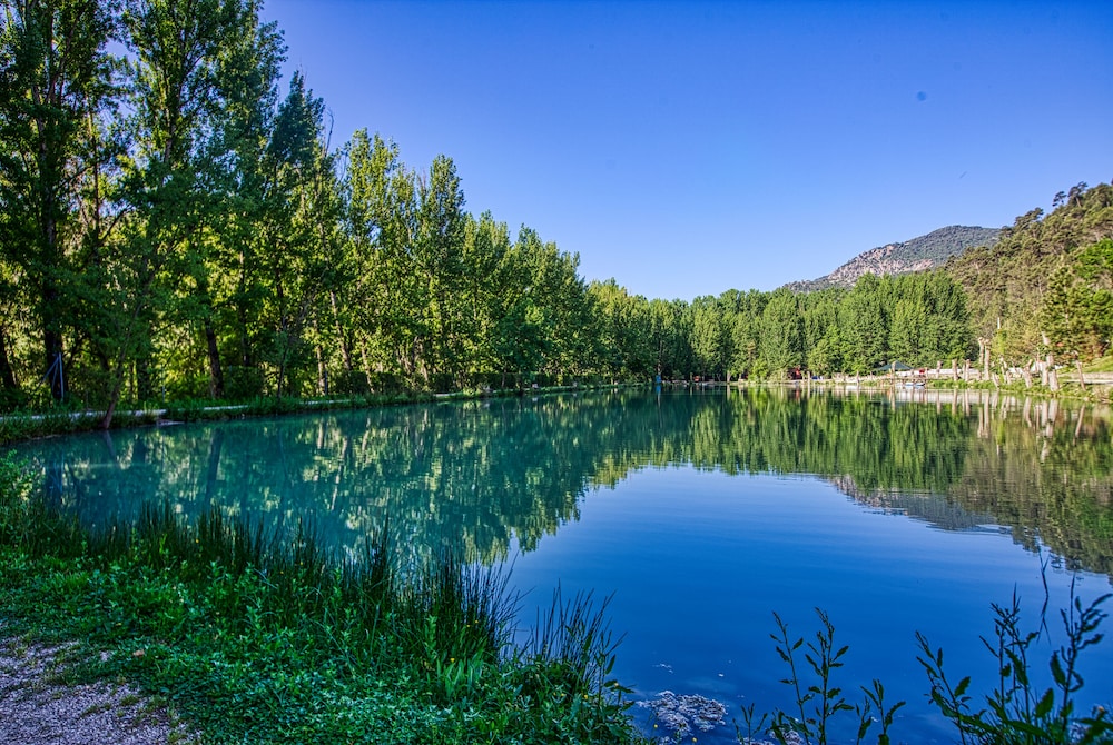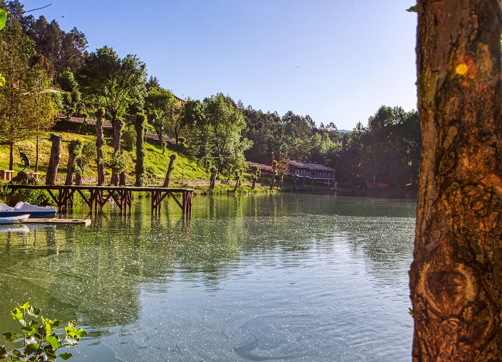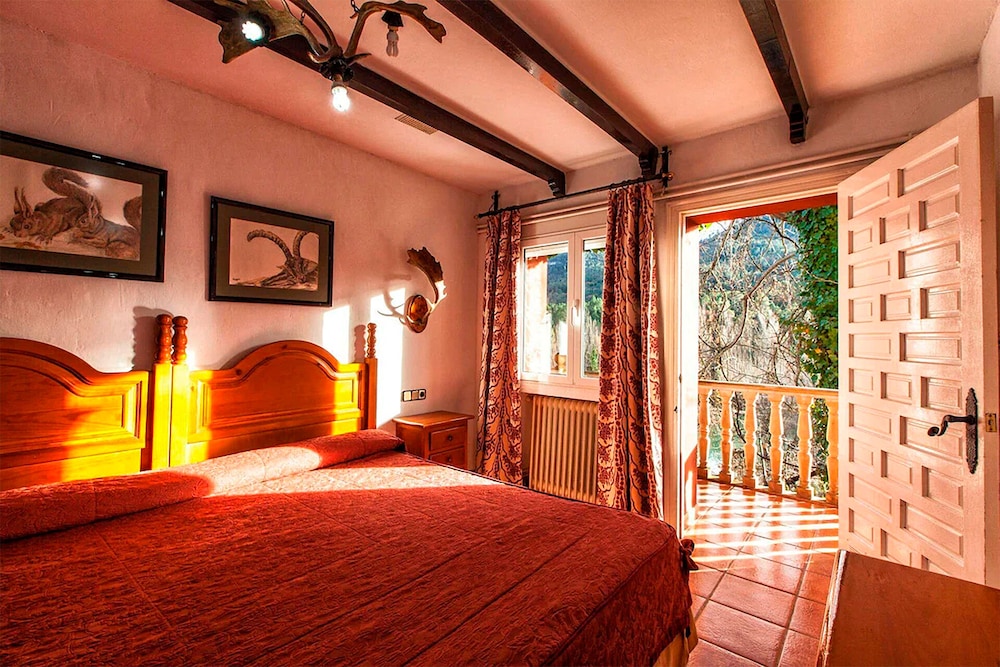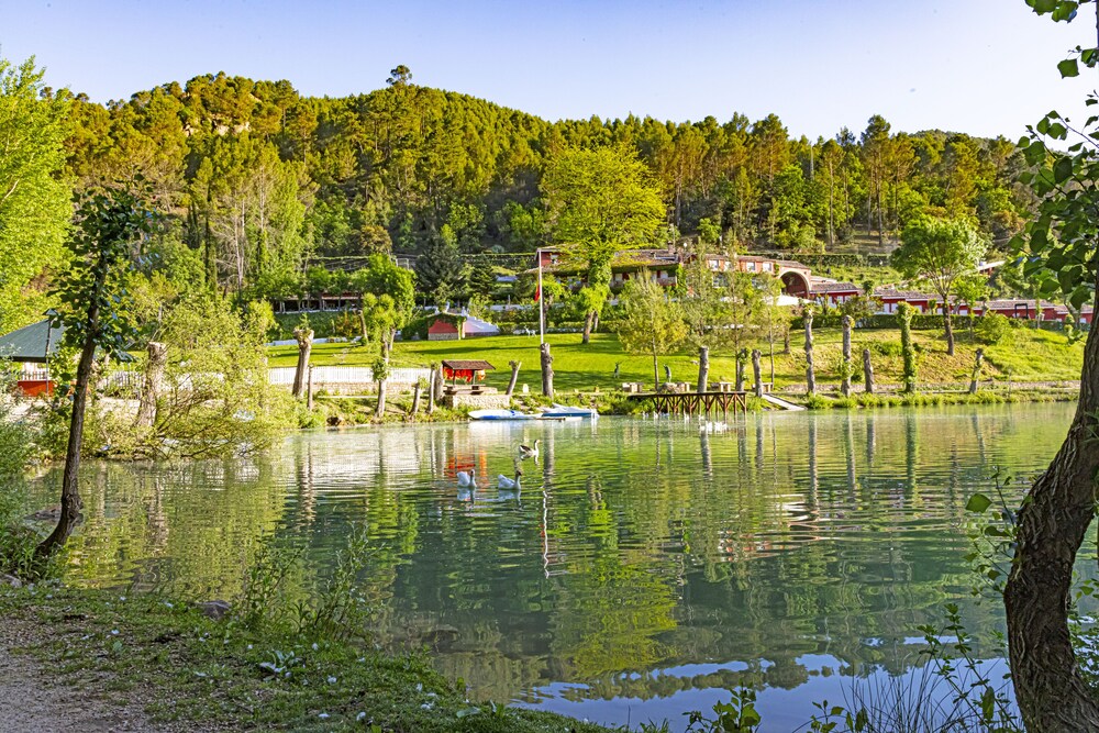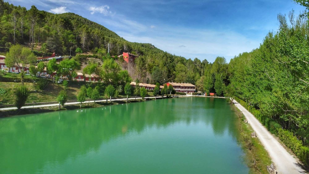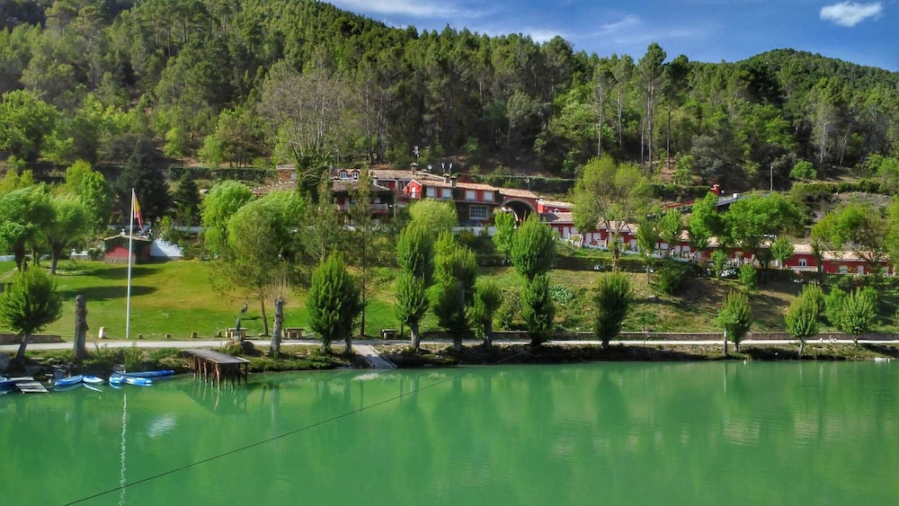 Un hotel en medio de la nada…tranquilidad absoluta, con un bonito lago, el río pasa justo por al lado del hotel, las habitaciones, por lo menos la nuestra, tenía una cama enorme y muy cómoda. El restaurante tiene una carta muy completa, y la atención de todo el personal es excelente. Se pueden llevar mascotas. Repetiremos seguro.