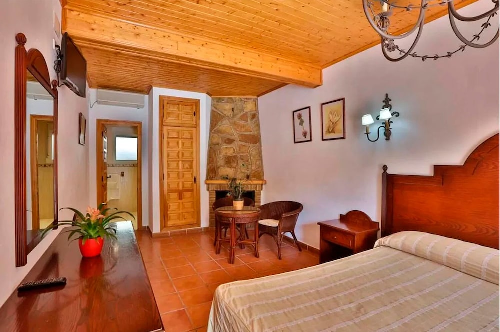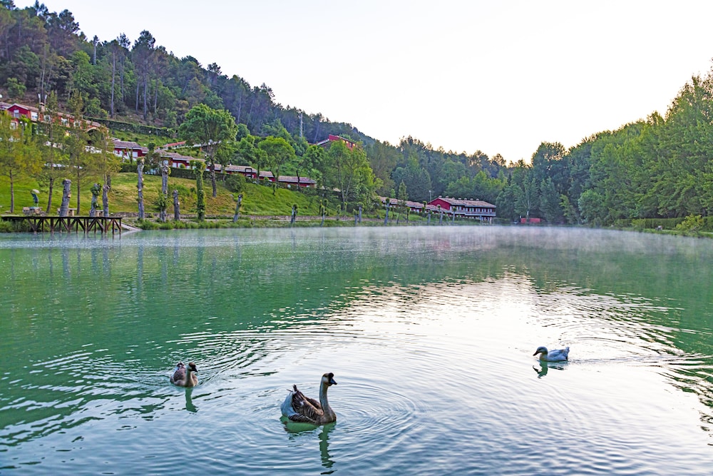 El entorno es inmejorable, es ideal para desconectar! La zona de piscina y lago ( aunq este está bastante verde) es precioso. El restaurante bien, aunq escasa la carta, al ser un sitio donde se ha de comer alii, si o si, o tienes que coger el coche , la carta me pareció un poco pobre; aunque la comida es buena. La pega que le encuentro es la habitación, al menos la q me tocó a mi.. los muebles huelen como a rancio.. el baño estaba bastante viejete, y,,la limpieza, la verdad q bastante pésima. Por lo q pude observar sólo habia una chica para la limpieza.. asi q no sé.. Al menos limpiar el espejo del baño? ni un solo dia se hizo.. Pero bueno, el hotel en si está bien.