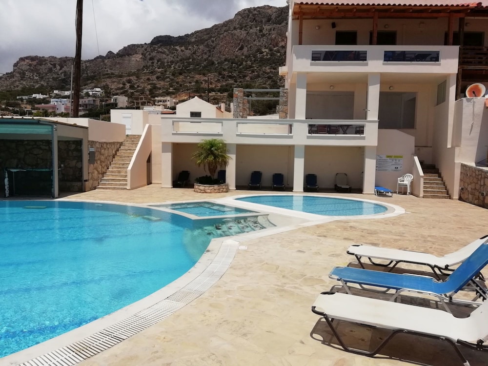 Gute Anlage in erhöhter Hangposition; tlw. mit Blick auf das lybische Meer; im Juli und August mitunter sehr starker Meltemi an einzelnen Tagen; schöne Poolanlage und saubere und renovierte Appartments, die einfach ausgestattet sind; hilfsbereites Personal; Handtuch- und Lakenwechsel alle 2 Tage; auch einzelne Mahlzeiten an einzelnen Tagen vor Ort kurzfristig zubuchbar; Gratis-WLAN funktioniert in den öffentlichen Bereichen, kaum in den Appartments;