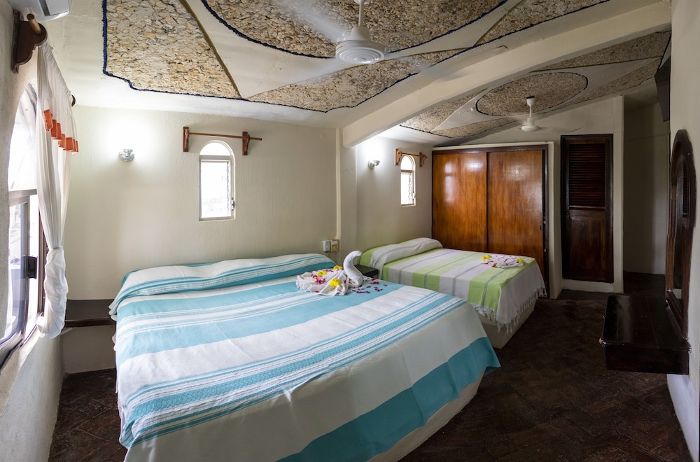 La ubicación es privilegiada a unos pasos de tiendas, restaurantes y la playa, además la alberca es muy agradable; sin embargo, la habitación de hotel (desconozco los bungalows) es muy antigua con unas goteras impresionantes, cables caídos, las puertas son muy viejas haciendo que la principal no cierre de forma confiable y dejen entrar todo el ruido de la fiesta nocturna haciendo difícil dormir. Al no haber teléfono se tiene que ir a recepción para cualquier necesidad y no apoyan solicitando taxis, indican que un servicio tarda 40 minutos en llegar cuando hay varios sitios y opciones.