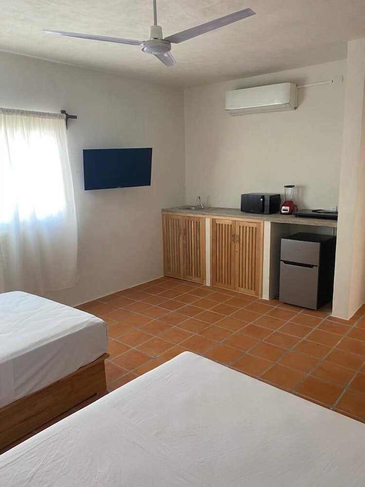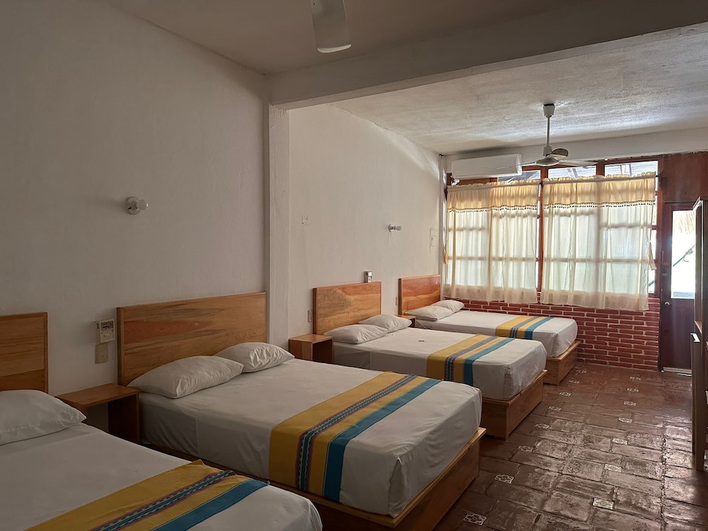 El personal es muy amable, te apoyan con tips. Solo hubo un dia q me dejaron toallas. Si van en tiempo de calor fuerte, no agarren habitación con ventilador, es demasiado caliente. Las almohadas incomodas. Se oye mucho ruido de los aires en el cuarto (de los otros). No es silenciosa. Si solo van a dormir, y bañarse, está bien. Hay agua caliente. La alberca muy agusto, mide 1.50 toda.